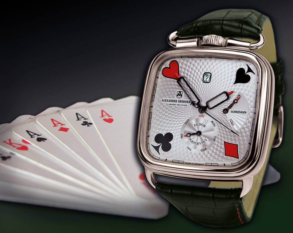 Dostojevský byl nejen velký spisovatel, ale i vášnivý hráč. Se stejnou vášní, s jakou psal romány, se vrhal i do hazardních her. V německém Baden-Badenu prohrál celý svůj majetek. Tato hráčská vášeň tohoto spisovatele motivovala A. Shorokhova k vytvoření neopakovatelného designu hodin Fedor Dostoevsky.