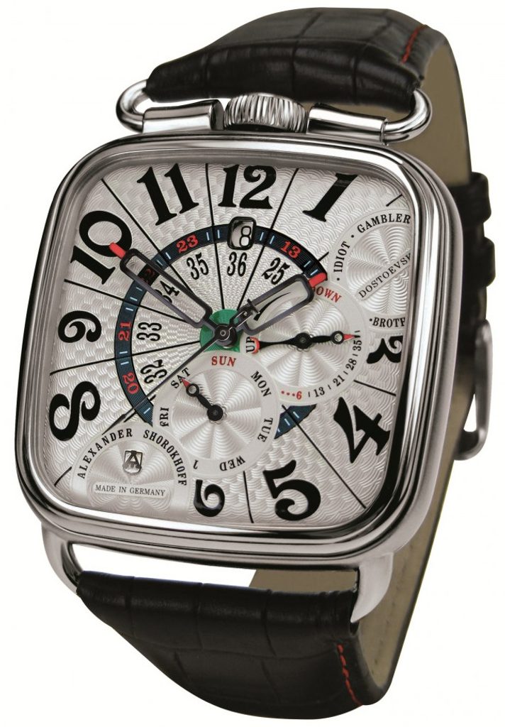 Dostojevský byl nejen velký spisovatel, ale i vášnivý hráč. Se stejnou vášní, s jakou psal romány, se vrhal i do hazardních her. V německém Baden-Badenu prohrál celý svůj majetek. Tato hráčská vášeň tohoto spisovatele motivovala A. Shorokhova k vytvoření neopakovatelného designu hodin Fedor Dostoevsky.