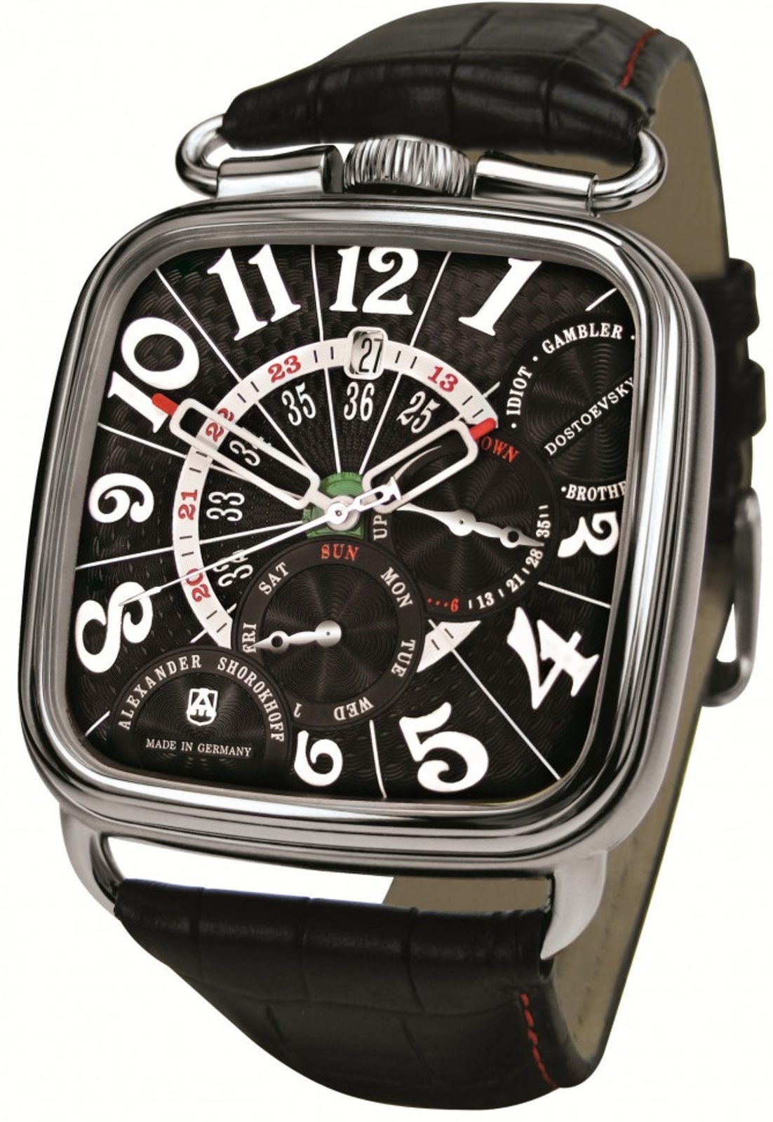 Dostojevský byl nejen velký spisovatel, ale i vášnivý hráč. Se stejnou vášní, s jakou psal romány, se vrhal i do hazardních her. V německém Baden-Badenu prohrál celý svůj majetek. Tato hráčská vášeň tohoto spisovatele motivovala A. Shorokhova k vytvoření neopakovatelného designu hodin Fedor Dostoevsky.