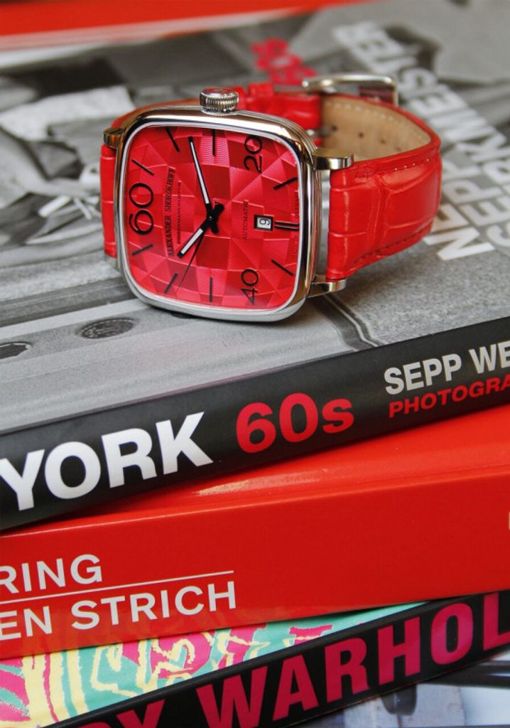 Elegantní pánské hodinky Alexander Shorokhoff Kandy AS.KD01-3E patří do modelové řady Avantgarde. Červená barva je symbolem ohně, vášně a síly. Je to základní barva, která vytváří další barvy. Jinak se jeví, když ji pozorujeme samostatně, jinak když ji vnímáme ve spojení s jinými barvami. A právě o to se pokusil Alexander Shorokhoff ve své kolekci Red. Exmerimentoval s červenou barvou buď jako s dominantní barvou, anebo ve spojení s jinou dominantní barvou - černou. Nebo také ve spojitosti s pastelovými barvami, jako je béžová či šedá.