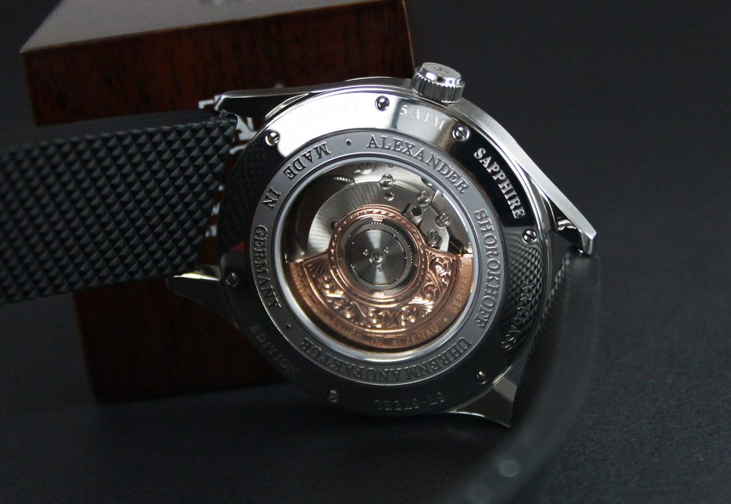 Díky průměru pouzdra 43,5 mm patnou na většinu pánských zápěstí. Voděodolnost 5 ATM udává, že hodinky zvládnout lehčí kontakt s vodou, jako je mytí rukou či sprcha. Model Alexander Shorokhoff Newport AS.NP1 byl vyroben v limitované edici v počtu pouhých 39 kusů.
