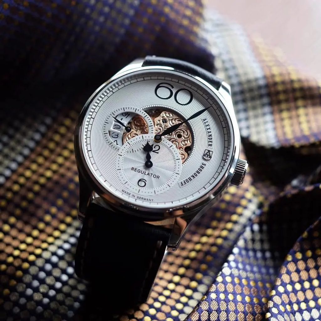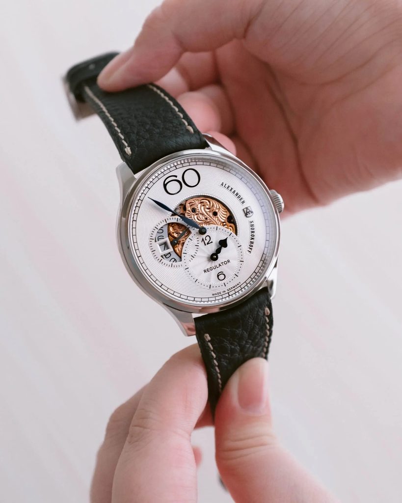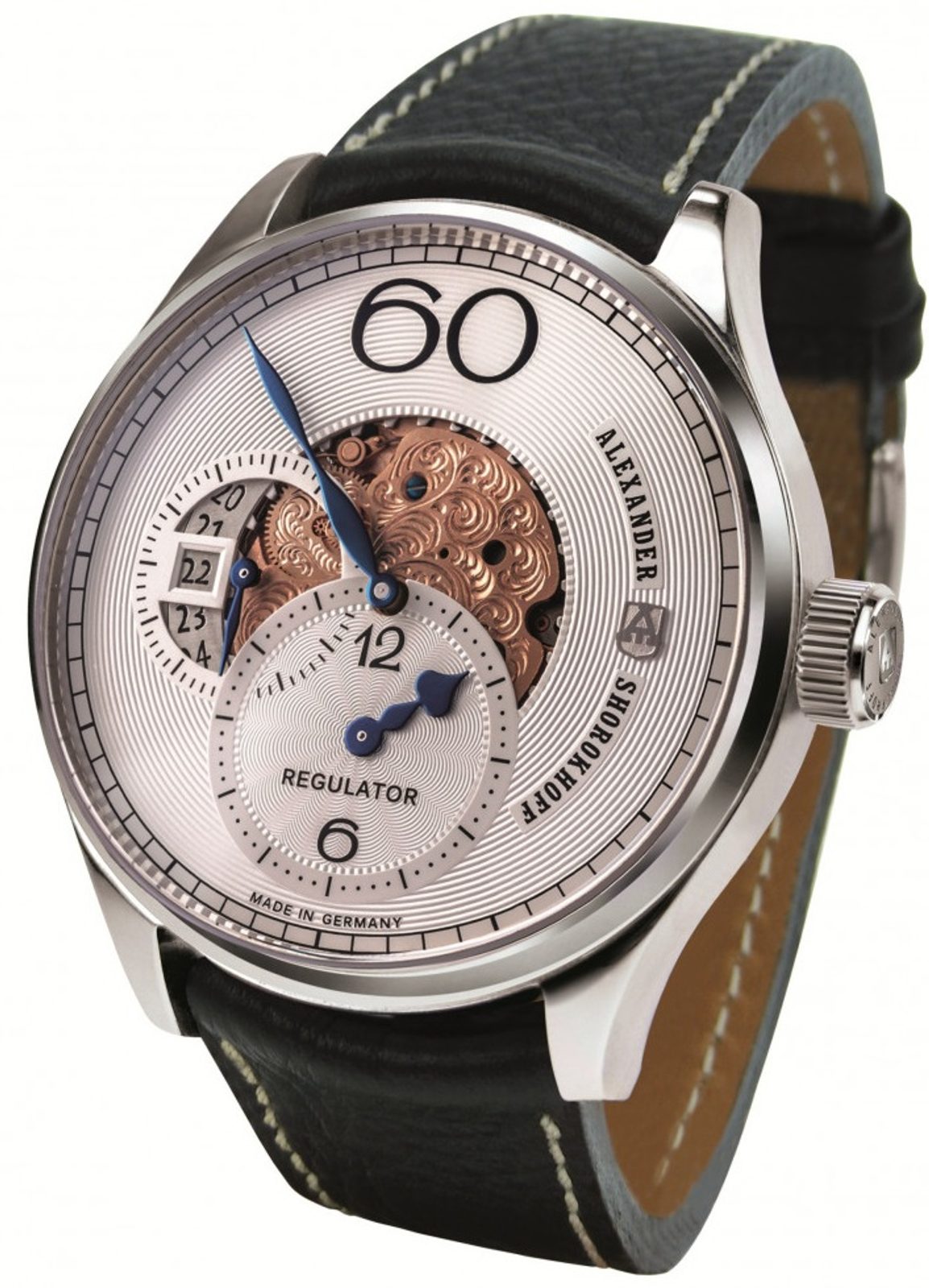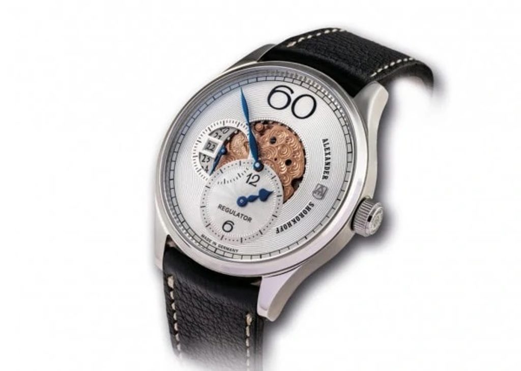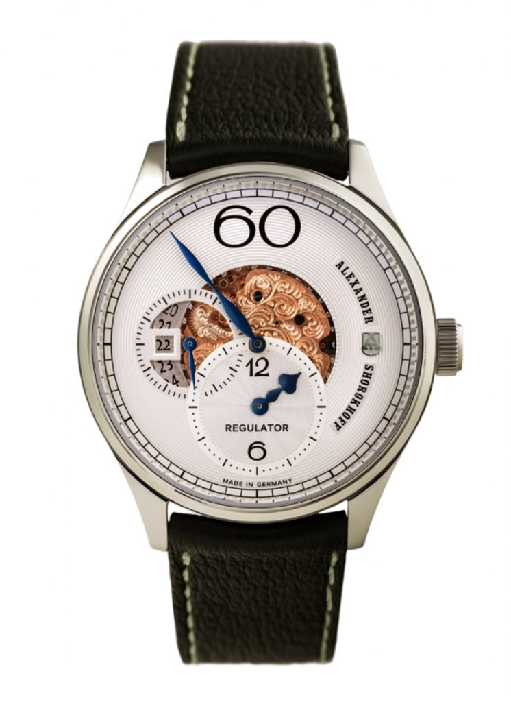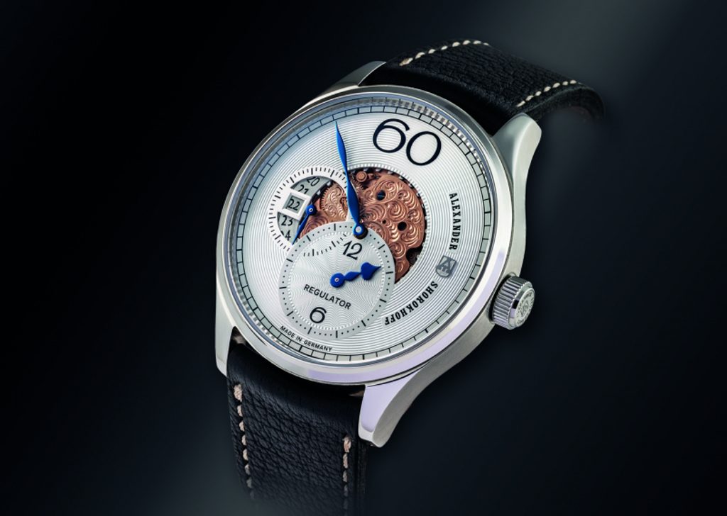 Typické rysy avantgardní linie Alexander Shorokhoff zůstaly nedotčené: elegantně modelované ručky a velká 60 na pozici 12.