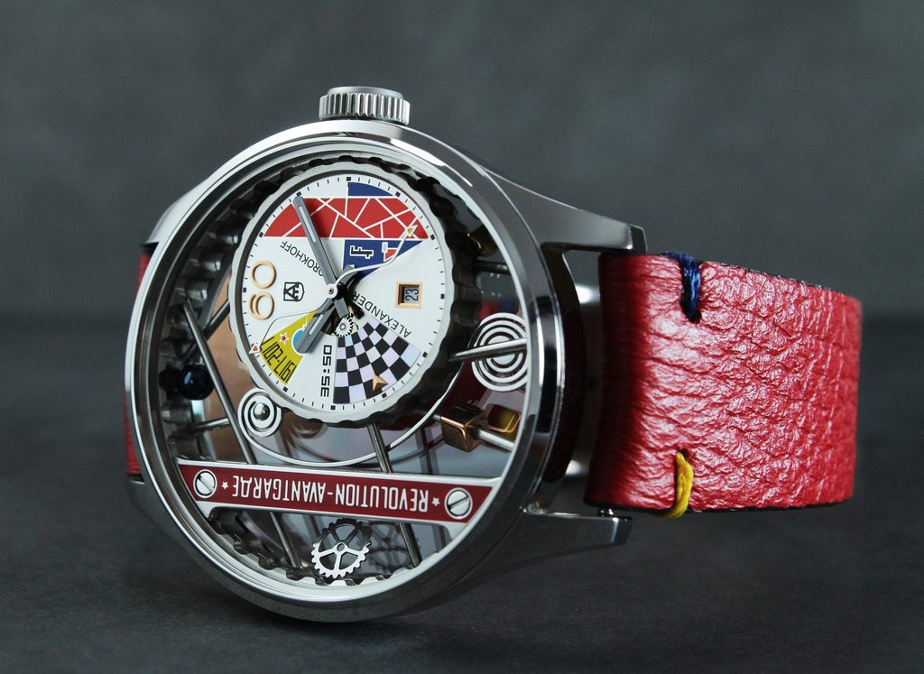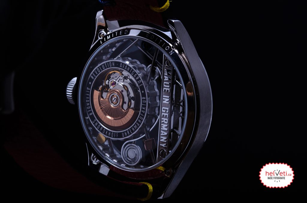 Pánské hodinky Alexander Shorokhoff Revolution AVG AS.REV-AVG patří do modelové řady Avantgarde. S novým modelem Revolution Avantgarde se Alexander Shorokhov snažil přinést více umění, více avantgardy, více revoluce do hodinářského umění a designu. Zároveň chtěl využít své technické dovednosti a představit své vize do budoucna. Model byl nominovaný do prestižní soutěže German Design Award 2020 a stal se vítězem.