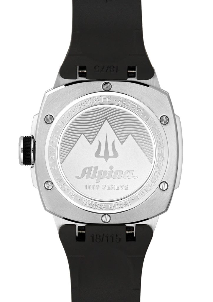 Hodinky Alpina Seastrong Diver Extreme Automatic AL-525B3VE6 ztělesňují základní principy společnosti Alpina, tedy koncepci "4", což znamená splnění těchto vlastností: antimagnetické, nárazuvzdorné, vodotěsné a s pouzdrem z nerezové oceli. Jsou výborným společníkem pro sportovní aktivity, ale i pro každodenní nošení.