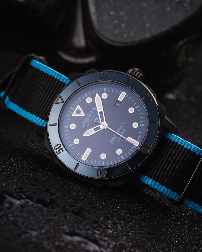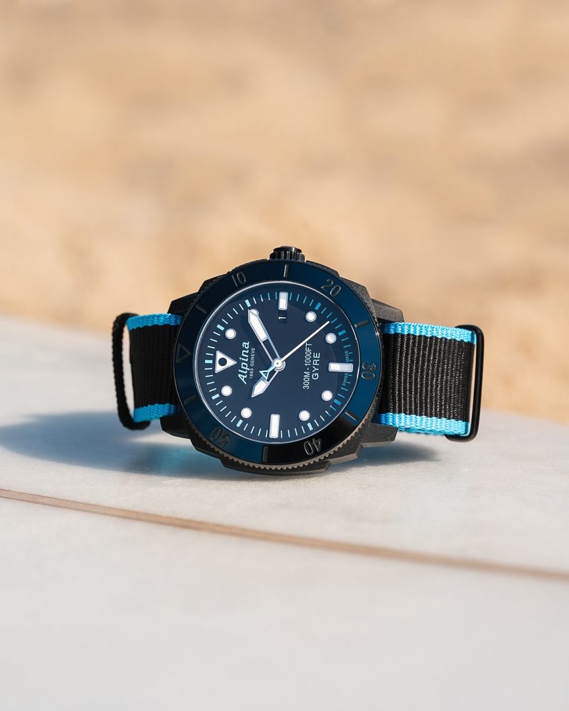 Hodinky Alpina Seastrong Diver Gyre Gents Limited Edition AL-525LBN4VG6 potěší především milovníky potápěčských hodinek. Díky svým vlastnostem a provedení jsou však využitelné nejen při potápění, ale i pro každodenní nošení. Tato limitovaná edice čítá 288 kusů a její pouzdro je vyrobeno z rybářských sítí z Indického oceánu.