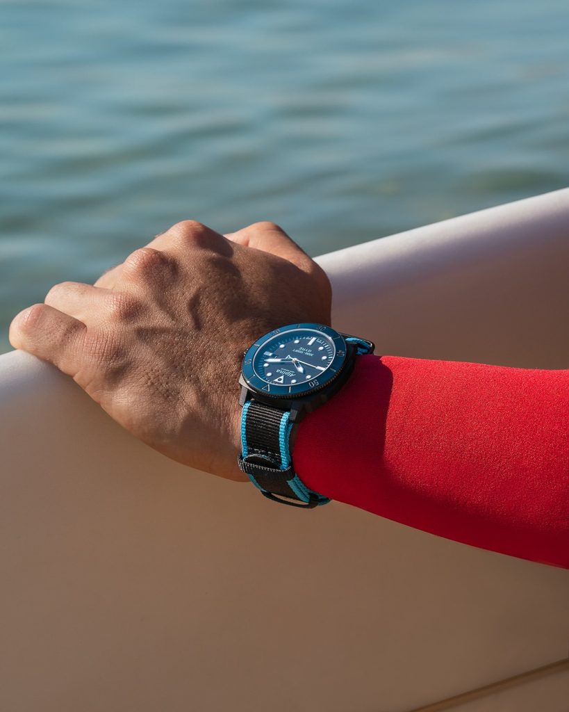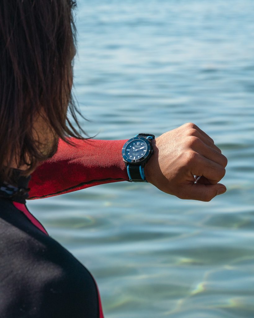Pouzdro, vyrobené z rybářských sítí vylovených v Indickém oceánu (70% plast, 30% skelné vlákno), v sobě skrývá švýcarský mechanický automatický strojek AL-525 (základem je Sellita SW200) s 26 kameny, který pracuje na frekvenci 28800 polokmitů za hodinu a disponuje ukazatelem data na tradiční pozici 3. Jeho činnost lze pozorovat díky průhlednému dýnku. Přehledný číselník, vyvedený v typickém "potápkovém" stylu, je chráněn safírovým sklíčkem, které je vysoce odolné vůči poškrábání. Nechybí ani jednosměrně otočná potápěčská luneta, určená k měření doby ponoru.