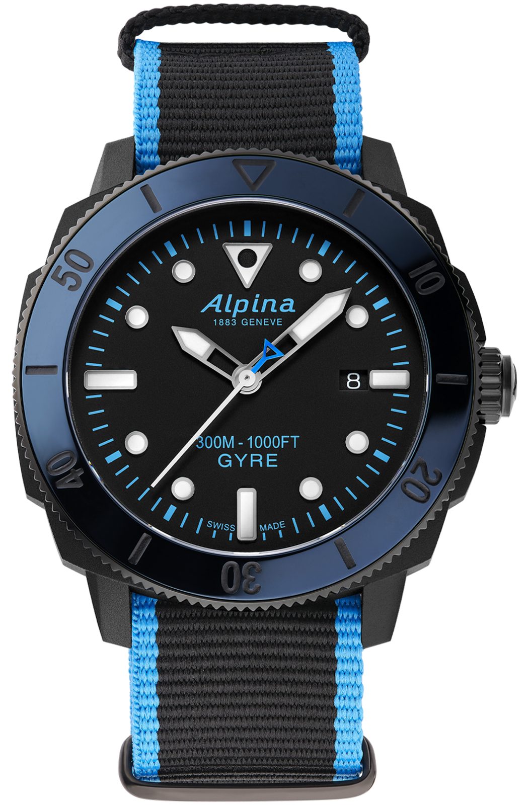 Kolekce Alpina Gyre vznikla na podporu čistoty oceánů, protože značka Alpina je odjakživa spojena s přírodou a jejím šetrným zkoumáním. Ve spolupráci s organizací Surfrider Foundation Europe, která bojuje proti znečišťování oceánů, vznikla tato jedinečná edice, kde byly použity materiály, vylovené z oceánu coby plastový odpad. Pouzdra těchto hodinek jsou vyrobena z rybářských sítí, vylovených z Indického oceánu. Řemínky, jejichž barva odkazuje na barvy oceánu, jsou pak vyrobeny z plastových lahví, případně z veganské kůže, vyrobené z jablek. Dokonce i speciální krabička je vyrobena z recyklovaných plastů. Nákup těchto materiálů zajišťuje společnost Gyre Watch. Název Gyre byl zvolen pro upozornění na fakt, že většina plastů jde do oceánů, kde je pohlcena a dále roznášena oceánskými "Gyry" - tedy vichřicemi či proudy.