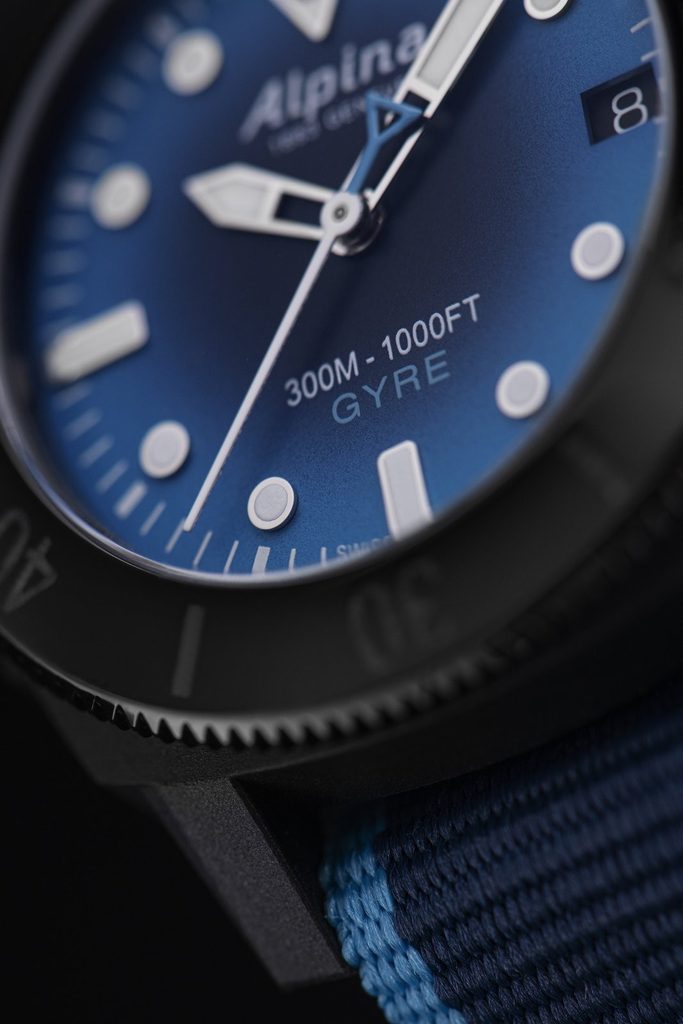 Kolekce Alpina Gyre vznikla na podporu čistoty oceánů, protože značka Alpina je odjakživa spojena s přírodou a jejím šetrným zkoumáním. Ve spolupráci s organizací Surfrider Foundation Europe, která bojuje proti znečišťování oceánů, vznikla tato jedinečná edice, kde byly použity materiály, vylovené z oceánu coby plastový odpad. Pouzdra těchto hodinek jsou vyrobena z rybářských sítí, vylovených z Indického oceánu. Řemínky, jejichž barva odkazuje na barvy oceánu, jsou pak vyrobeny z plastových lahví, případně z veganské kůže, vyrobené z jablek. Dokonce i speciální krabička je vyrobena z recyklovaných plastů. Nákup těchto materiálů zajišťuje společnost Gyre Watch. Název Gyre byl zvolen pro upozornění na fakt, že většina plastů jde do oceánů, kde je pohlcena a dále roznášena oceánskými "Gyry" - tedy vichřicemi či proudy.