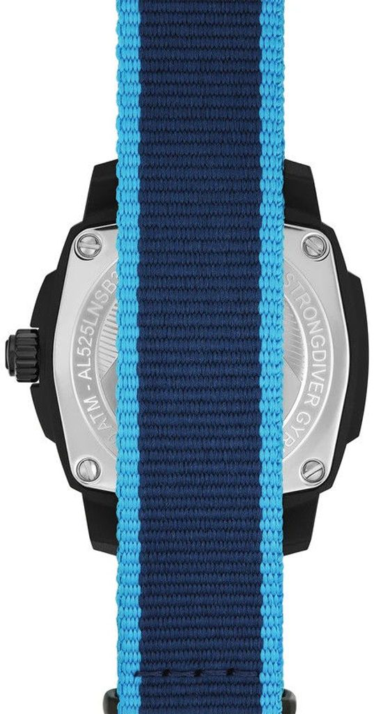 Model AL-525LNSB3VG6 je dodáván s praktickým NATO řemínkem, vyrobeným z plastových lahví a díky průměru pozdra 36 mm skvěle padne na většinu dámských zápěstí. Součástí balení je také druhý řemínek z veganské kůže, vyrobené z jablek. Voděodolnost těchto hodinek je 300m, jsou tedy určeny i pro hloubkové potápění.