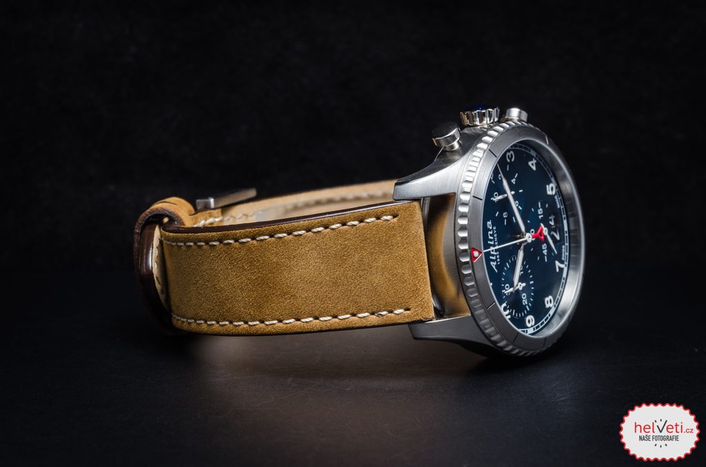 Ocelové pouzdro v sobě skrývá švýcarský bateriový strojek AL-372 (základem je Ronda 8040.N) se 13 kameny, který disponuje funkcí velkého data na pozici šesté hodiny a stopkami. Přehledný číselník, vyvedený v leteckém stylu, je chráněn safírovým sklíčkem, které je maximálně odolné vůči poškrábání. Antireflexní vrstva pak zajišťuje dobrou čitelnost i za ostrého světla. Luneta okolo číselníku není otočná.