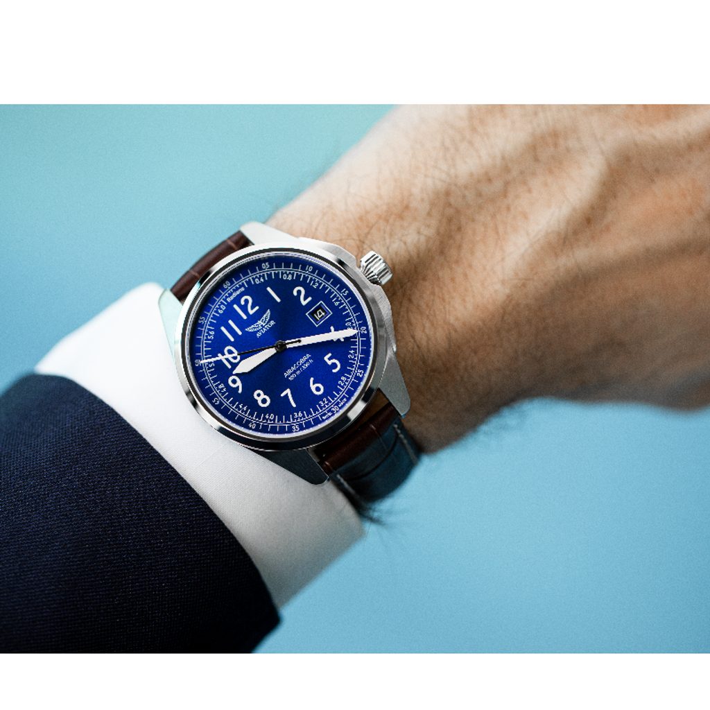 Značka Aviator se zrodila z vášně pro inovativní design a vynikající řemeslné zpracování. Od roku 2000 se značka věnuje výrobě moderních pilotních hodinek, a to nejen pro letecké profesionály, ale pro všechny nadšence do hodinek.
