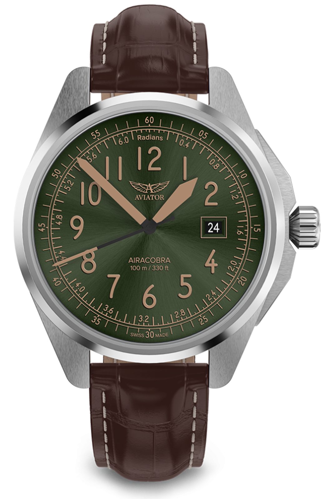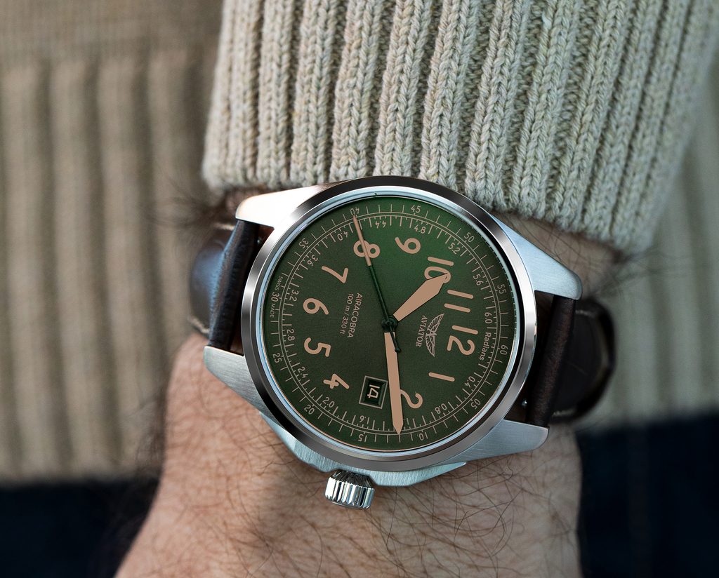 Úspěch pěších operací během druhé světové války umožnily letouny Airacobra, které podporovaly vojáky z oblohy. Stejně jako byl tento bojový letoun důležitý pro piloty i pro misi, nabízejí hodinky Aviator Airacobra stejnou spolehlivost s vintage vzhledem inspirovaným tímto úctyhodným válečným hrdinou. Hodinky Aviator Airacobra jsou vyrobeny z prvotřídních materiálů a kombinují vojenskou přesnost s klasickým vzhledem.