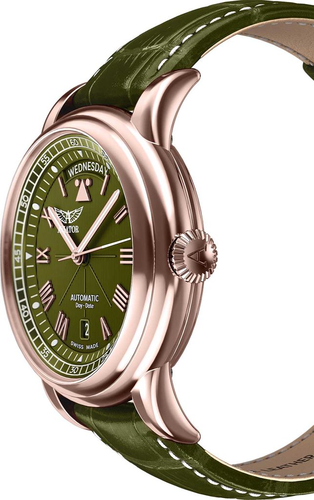 Díky průměru pouzdra 41,2 mm padnou hodinky Aviator Douglas Day-Date 41 Automatic na většinu pánských zápěstí. Voděodolnost 10 ATM udává, že jsou tyto hodinky skvělým společníkem nejen ve vzduchu, ale také i během plavání ve vodě.