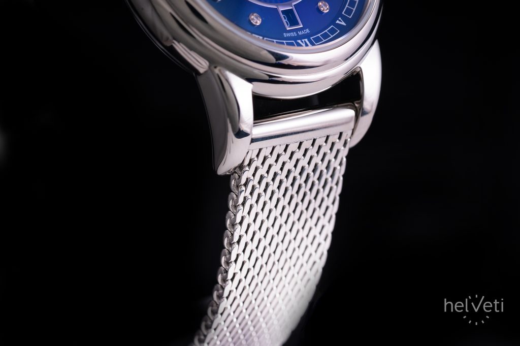 Srdcem těchto hodinek je spolehlivý quartzový strojek švýcarské výroby Ronda 708. Je vybaven komplikací fáze Měsíce, která je zvýrazněna propracovanou povrchovou úpravou, metalizací a leštěním. Tato komplikace, fungující s naprostou přesností den po dni, vám umožní být v přesném souladu s mnoha fázemi Měsíce v průběhu celého měsíce.