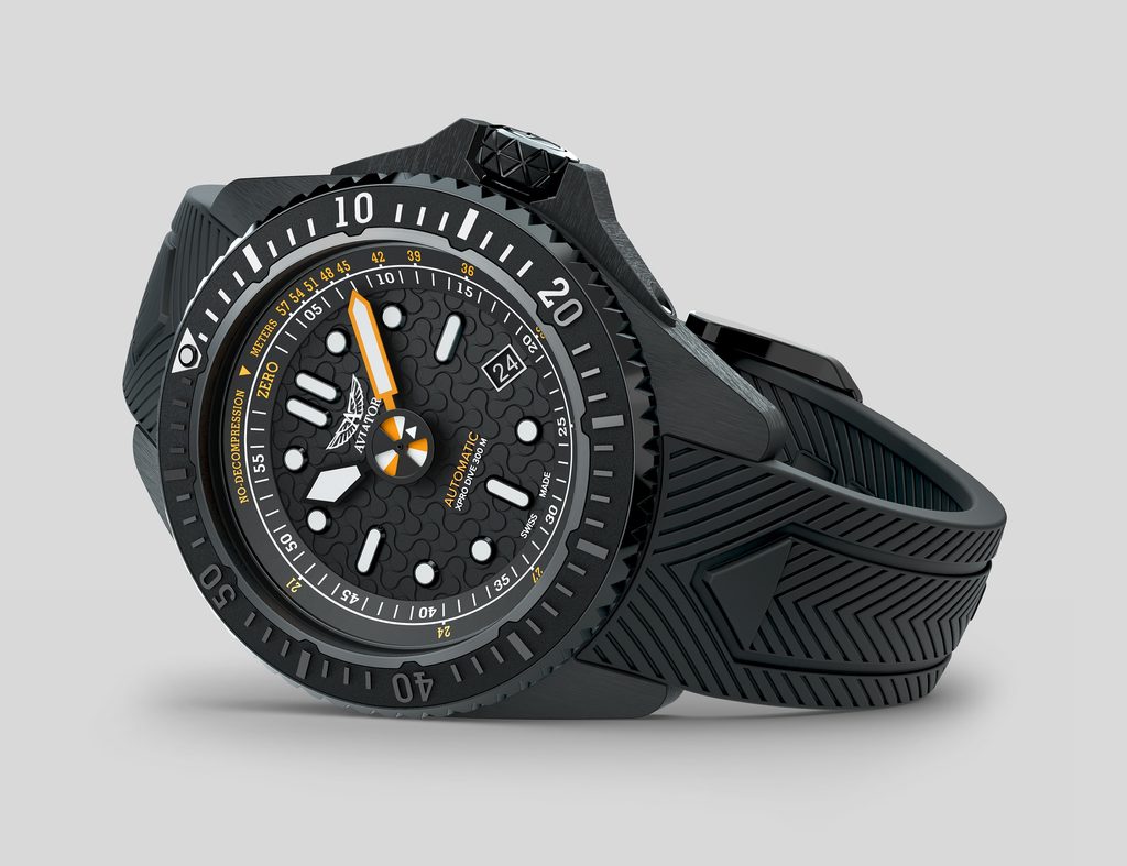 Hodinky Aviator XPRO DIVE BREATHER 300 AUTO byly navrženy pro ty, kteří se orientují v oblacích i v hlubinách vod, a nově definují profesionální měření času. Tyto hodinky, navrženy pro potápěče i piloty, kombinují leteckou přesnost s odolností v hluboké vodě. Díky vodotěsnosti do 300 metrů, kvalitnímu švýcarskému strojku s automatickým nátahem a dobře čitelnému ciferníku hodinky zajišťují špičkový výkon, ať už se vznášíte nad oblaky nebo zkoumáte hlubiny vod.