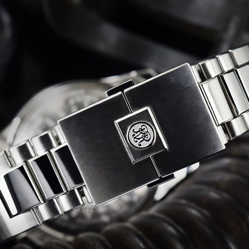 Počítat lze také s odolností proti nárazu o síle 7500 Gs, což odpovídá pádu hodinek až z 1,5 metru bez poškození strojku. K zobrazení dalšího časového pásma poslouží obousměrně otočná safírová GMT luneta, která je vybavena pro tuto značku typickými tritiovými luminiscenčními trubičkami H3. To zajišťuje bezproblémovou možnost jejího využití i ve tmě.