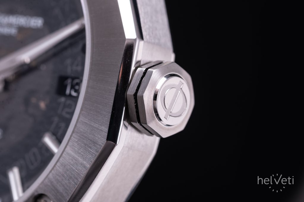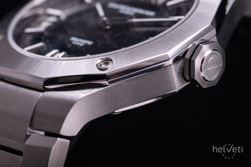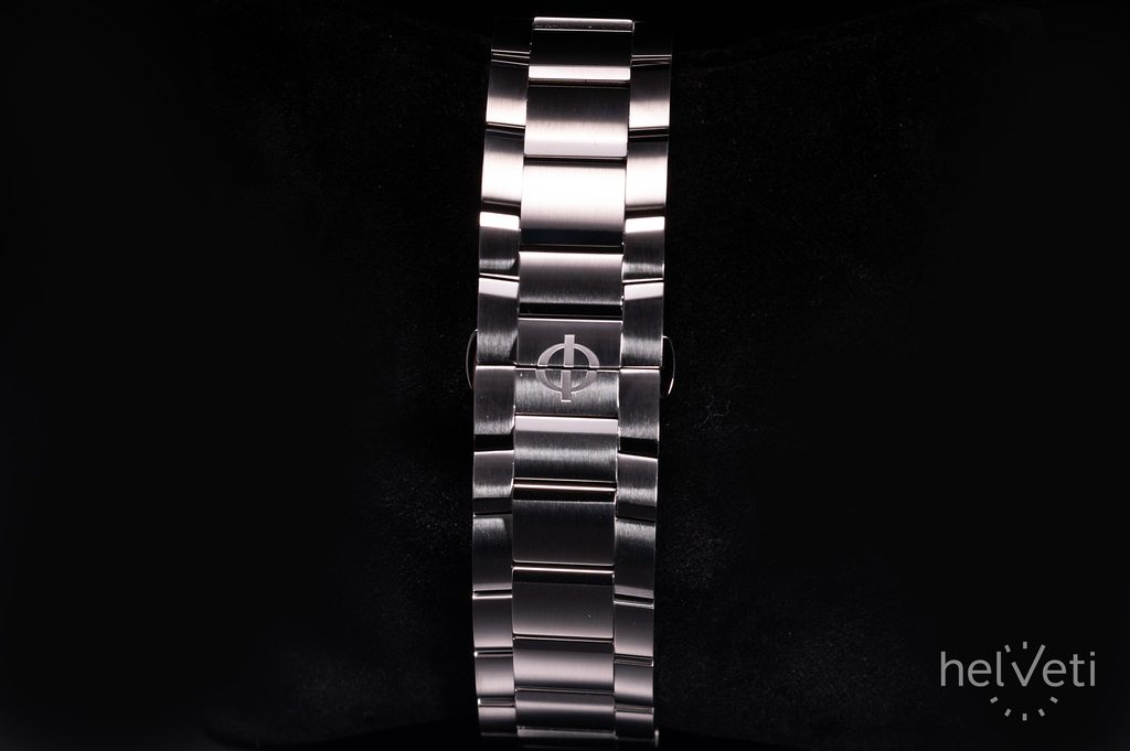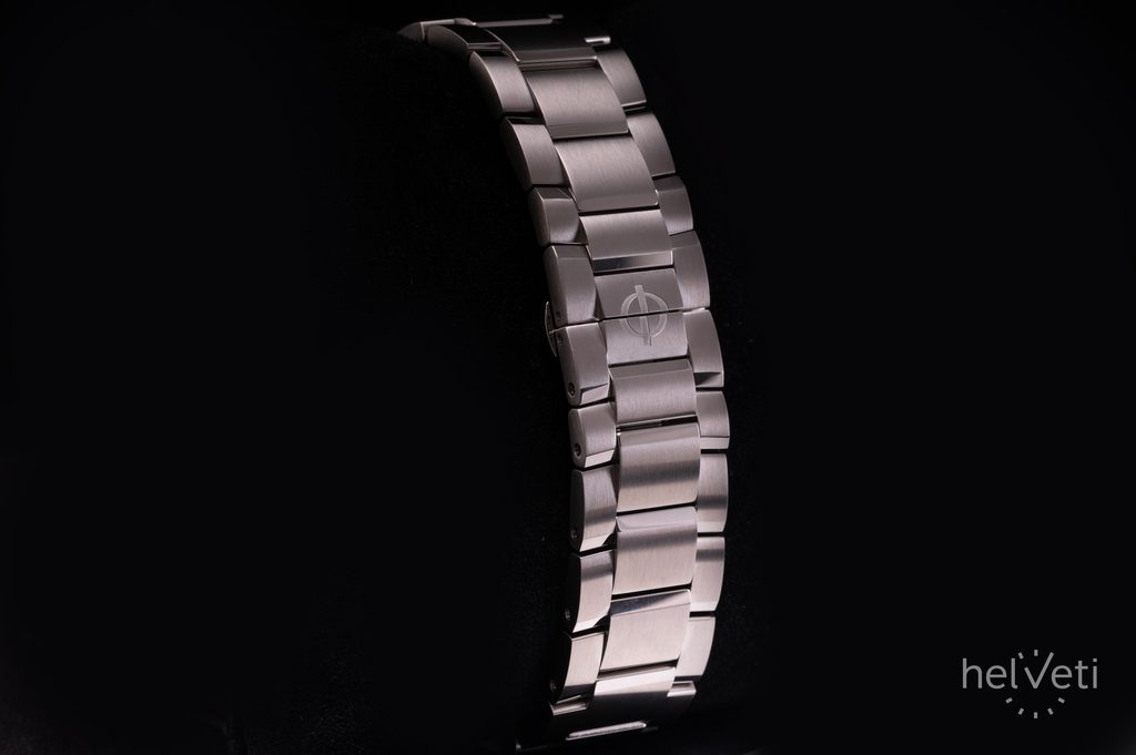 Ocelové pouzdro hodinek je doplněno třířadým ocelovým náramkem zakončeným motýlovou sponou. Právě integrovaný náramek podporuje sportovní nádech hodinek, navíc je vybaven systémem rychloupínání a případná výměna je tak velmi snadná i bez použití nástrojů.