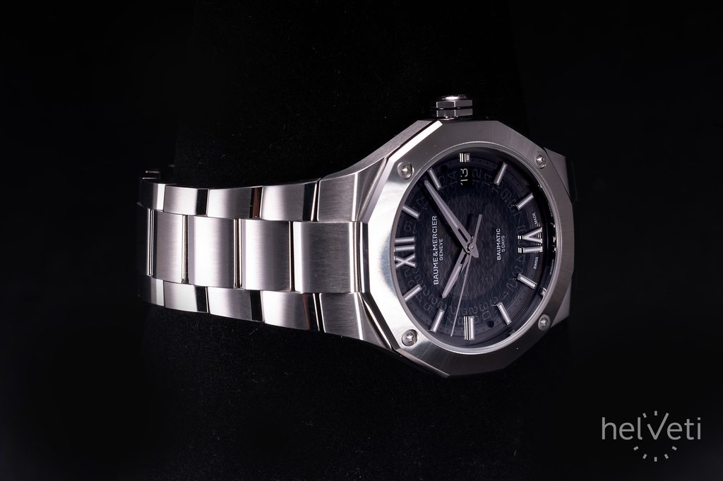 Baume & Mercier Riviera 10702 jsou pánským provedením ikonických sportovně elegantních hodinek z řady Riviera. Design nezapře svého předchůdce, uvedeného na trh poprvé v roce 1973. Nejvýraznějším prvkem modelů Riviera je vedle charakteristického tvaru pouzdra číselník - v tomto případě průhledný, vyrobený z kouřově šedého safíru, na němž nechybí ani znázornění zvlněné vodní hladiny. Díky svému specifickému vzhledu jsou skvělou volbou při výběru sportovně elegantních pánských hodinek.
