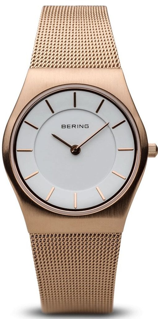 Dámské hodinky Bering Classic 11930-366 jsou elegantní, čisté hodinky, které zaujmou moderní kombinací bílého ciferníku a zlatorůžového pouzdra a tahu hodinek. Hodinky drží na ruce díky pletenému náramku z ušlechtilé oceli.