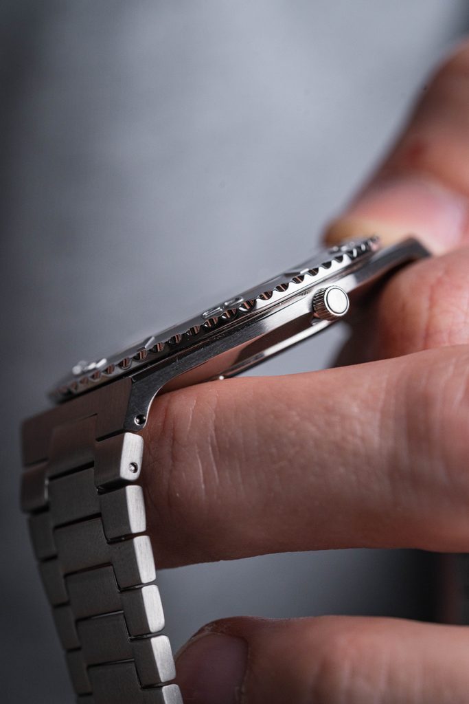 Ciferník je chráněn safírovým sklíčkem. Vodotěsnost tohoto modelu je 10 ATM, hodinky tedy lze vystavit mytí rukou a sprchování.