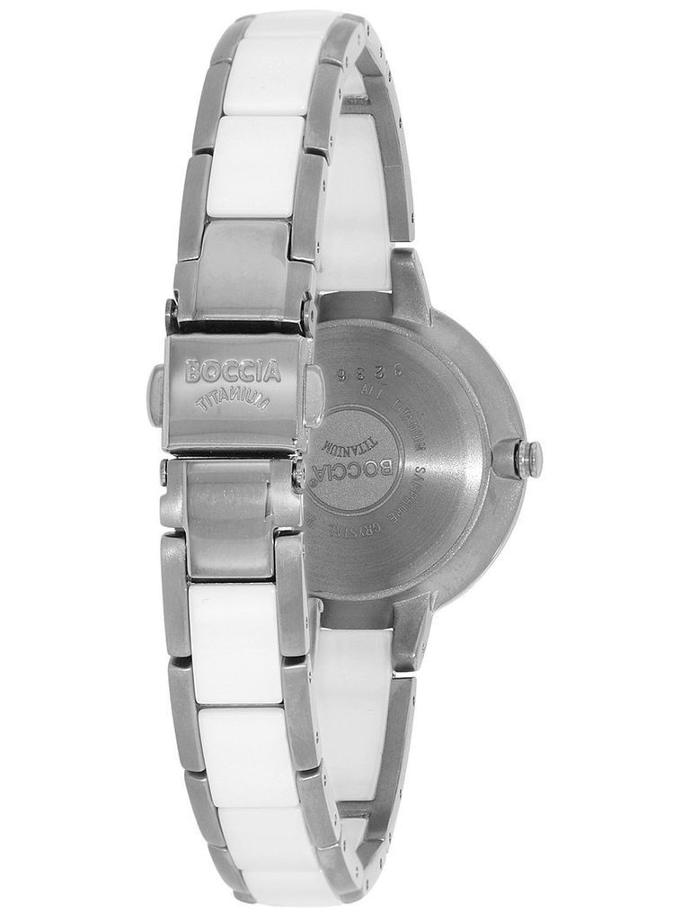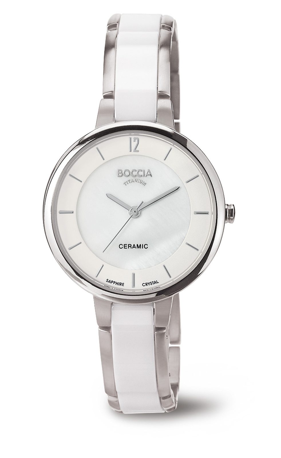 Velmi elegantní dámské hodinky Boccia Titanium 3236-01 jsou novinkou roku 2014. Kulaté titanové pouzdro ukrývá ciferník s bílým podkladem a safírovým sklíčkem. Díky titanovému tahu s bílými keramickými výplněmi si tyto hodinky zamilujete.