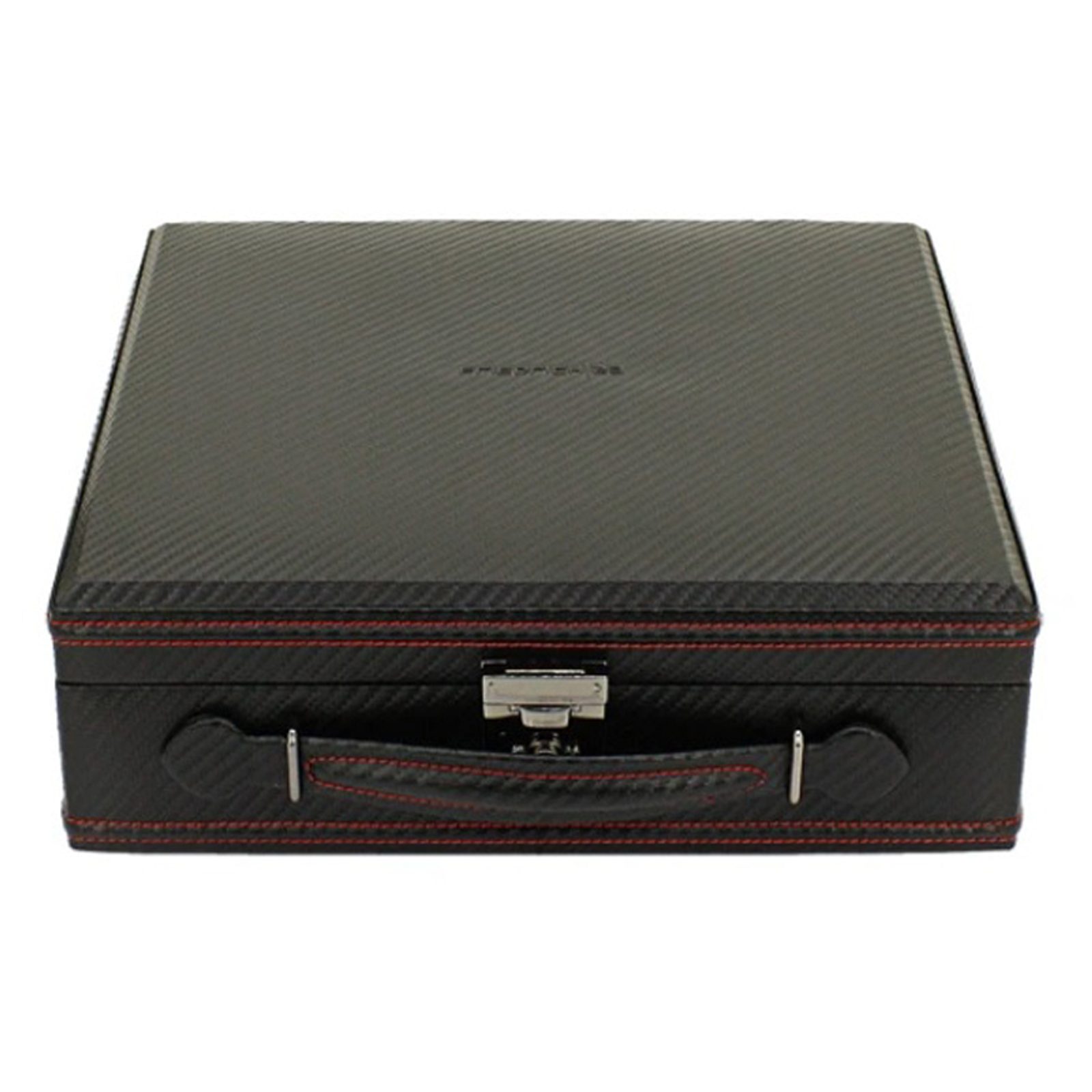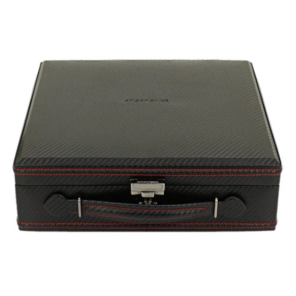 Elegantní box na hodinky Friedrich Lederwaren Carbon 32054-2 pro 12 kusů hodinek. Vyrobeno z černého syntetického materiálu se vzorem karbonu. Interiér je červené barvy. Box obsahuje prostorné přihrádky pro větší hodinky.