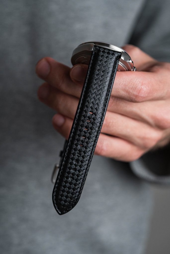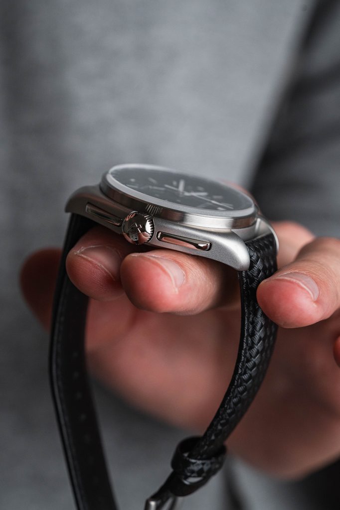 Dokonale přehledný a kvalitně zpracovaný číselník je chráněn vystouplým safírovým sklíčkem s antireflexní vrstvou. Nemusíte se tedy bát jeho poškrábání a díky antireflexní vrstvě se můžete spolehnout na výbornou čitelnost i za ostrého slunečního svitu. Hodinky jsou dodavané na černém koženém řemínku s možností výměny za nylonový velcro řemínek na suchý zip, který je součástí balení. Vodotěsnost modelu je 50 m.