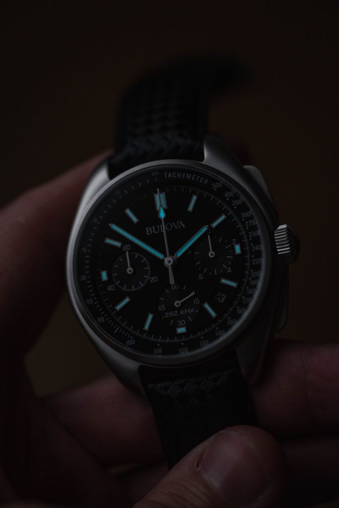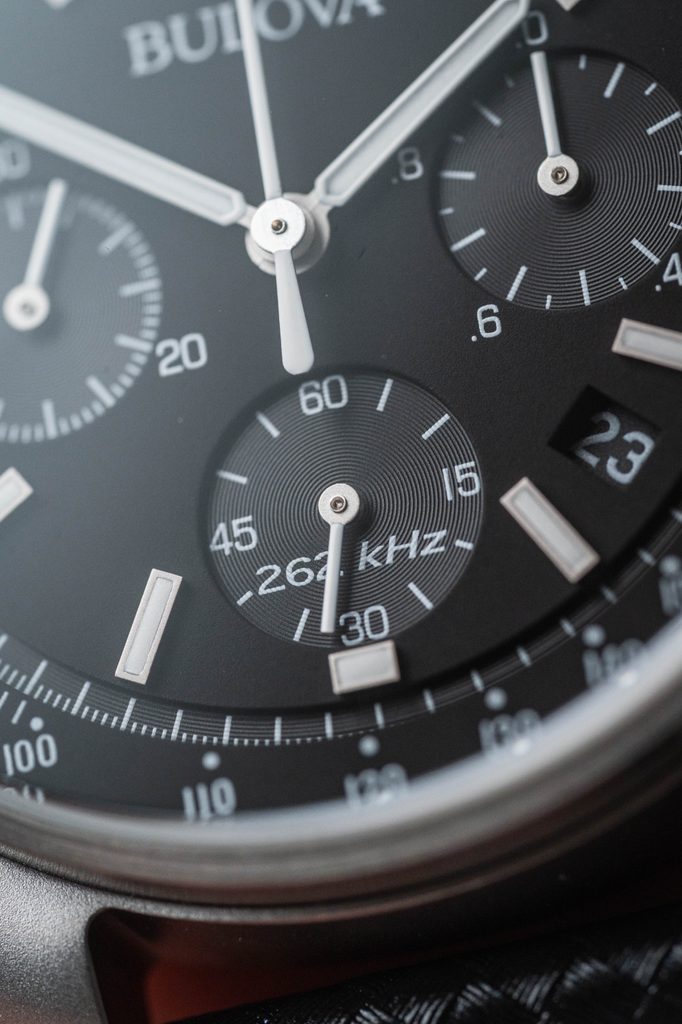 Pouzdro hodinek Bulova 96B251 Special Edition Lunar Pilot Chronograph je vyrobeno z ušlechtilé oceli a jeho design vychází z legendárních hodinek Bulova Chronograph, použitých astronautem Scottem při misi Apollo 15. Uvnitř najdeme vysoce výkonný quartzový UHF (Ultra High Frequency) strojek, pracující na frekvenci 262 kHz. To je zhruba 8x více, než u běžných quartzových strojků (32768 Hz). Díky tomu je možné dosáhnout extrémní přesnosti chodu s odchylkou přibližně 10s za rok! Tento strojek dále nabízí také funkci stopek.