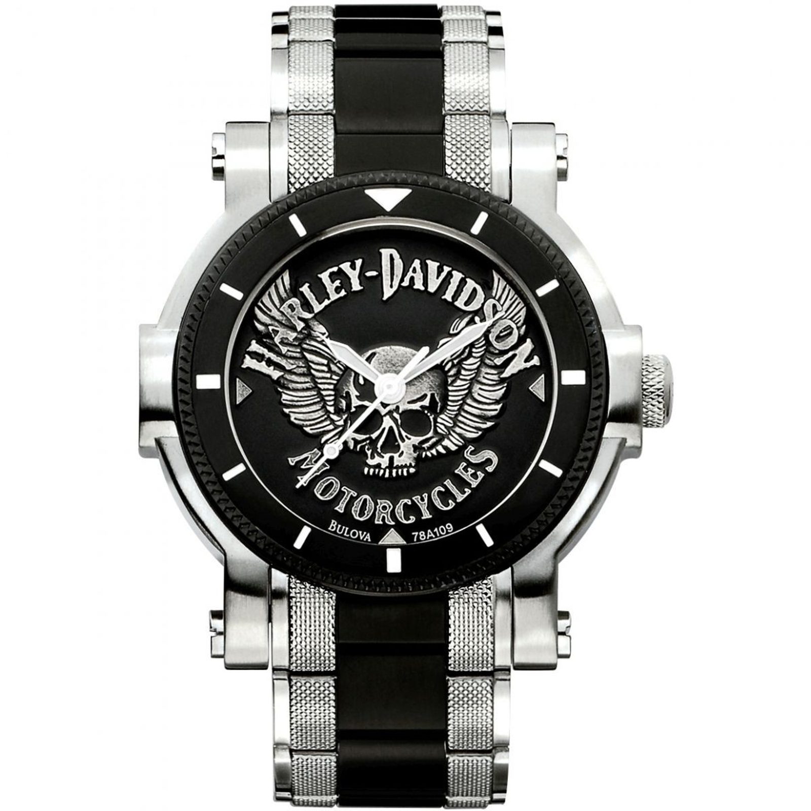 Černý ciferník, jenž je podkladem prvkům odkazujícím ke slavné motorkářské společnosti, je chráněn minerálním sklíčkem. Hodinky upoutají svým výrazným vzhledem, detaily v podobě částečné PVD úpravy pouzdra a náramku. Ručky hodinek jsou opatřeny luminiscencí a usnadňují tak odečet času při zhoršených světelných podmínkách. Pouzdro i náramek hodinek jsou vyrobeny z nerezové oceli, části pouzdra a náramku jsou opratřené černou PVD úpravou povrchu. Zajímavostí je vyobrazení hodinových indexů pouze na prostoru lunety, ciferník je těchto běžných prvků prostý. Hodinky pohání bateriový strojek Miyota. Hodinky disponují vodotěsností 100 m, není je tak třeba odkládat ani při koupání. Díky průměru pouzdra 44 mm jsou hodinky vhodné pro větší zápěstí.