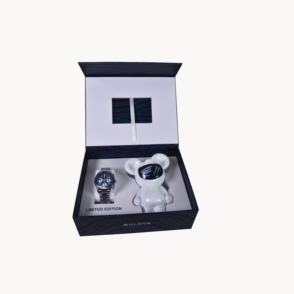 Bulova Lunar Pilot 98A329 Timascus Limited Edition je limitovanou edicí představenou k příležitosti 150. výročí značky. Odvážná interpretace ikonického chronografu vznikla ve spolupráci s brazilským umělcem Thiagem Rosinholem, který je známý svými figurkami Budii. Na hodinkách i speciálním balení jsou patrné prvky pop-artu.