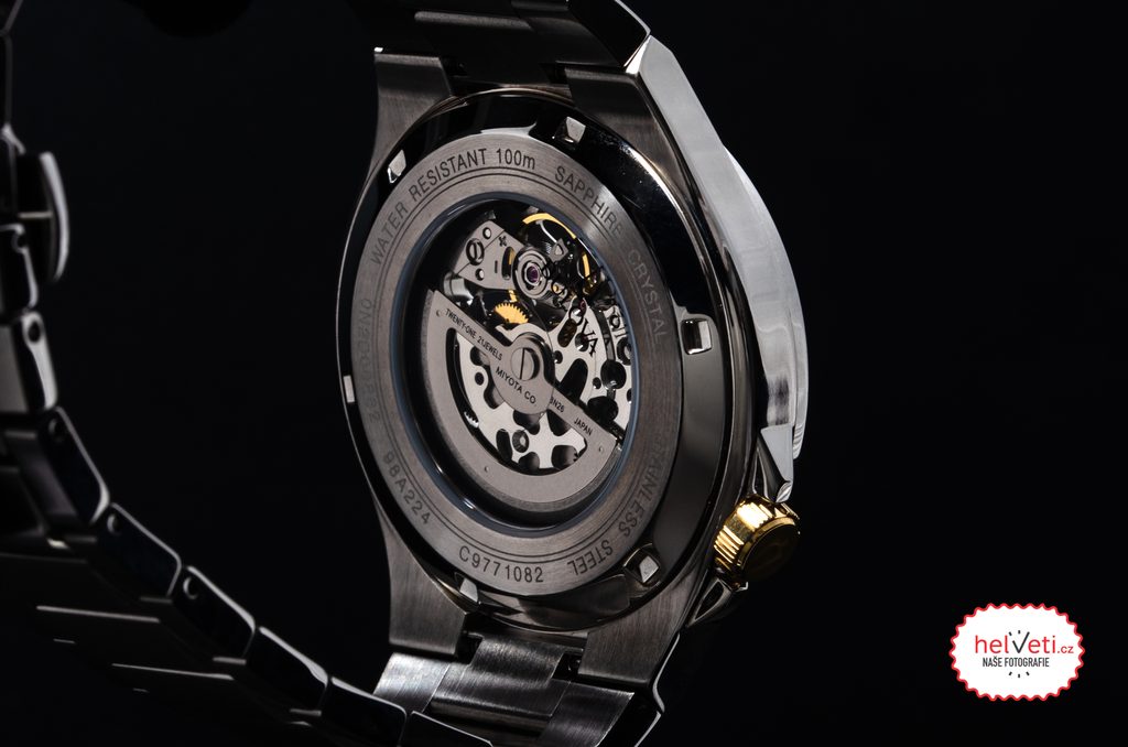 Srdcem hodinek je mechanický strojek Miyota s automatickým nátahem a rezervou chodu kolem 42 hodin. Chod strojku je možné krom číselníku sledovat také proskleným dýnkem. Pouzdro i náramek hodinek jsou vyrobeny z nerezové oceli. Hodinky disponují vodotěsností 100 m, s hodinkami je tedy možné plavat.