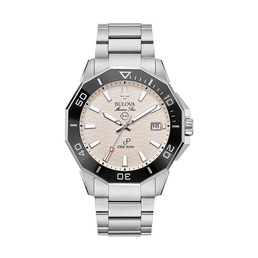 Pánské sportovní hodinky Bulova Marine Star Precisionist 96B426 na první pohled upoutají především výrazným vzhledem, světlým strukturovaným číselníkem a pouzdrem s dvanáctibokou lunetou, doplněným praktickým ocelovým náramkem.
