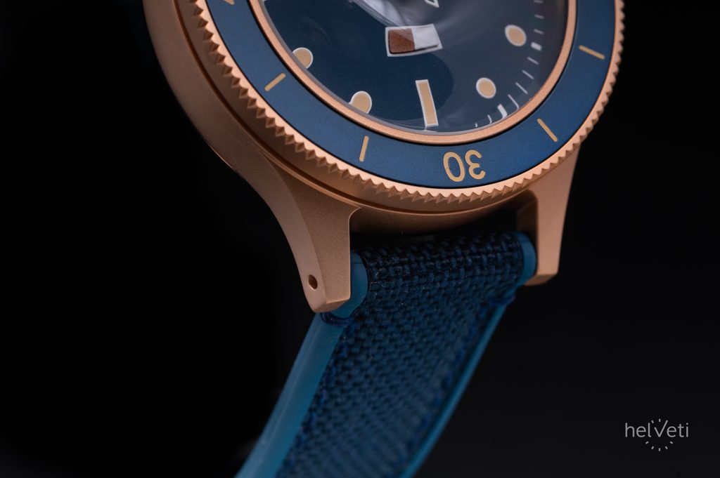 Na modrém číselníku hodinek zaujmou ručky se svým vintage nádechem a indikátor vlhkosti nad 6. hodinou, díky němuž snadno poznáte, zda do hodinek vnikla vlhkost, v takovém případě změní barvu. Další jedinečnou vlastností těchto hodinek je funkce obousměrně otočné lunety, otáčet jí lze teprve po přitlačení. Bronzové pouzdro hodinek je doplněno vylepšeným 18 mm řemínkem, kombinujícím pryž a nylon Cordura® pro dosažení co nejvyšší odolnosti a pohodlí. Poháněny jsou mechanickým strojkem s automatickým nátahem Miyota 83S0, s rezervou chodu kolem 60 hodin.