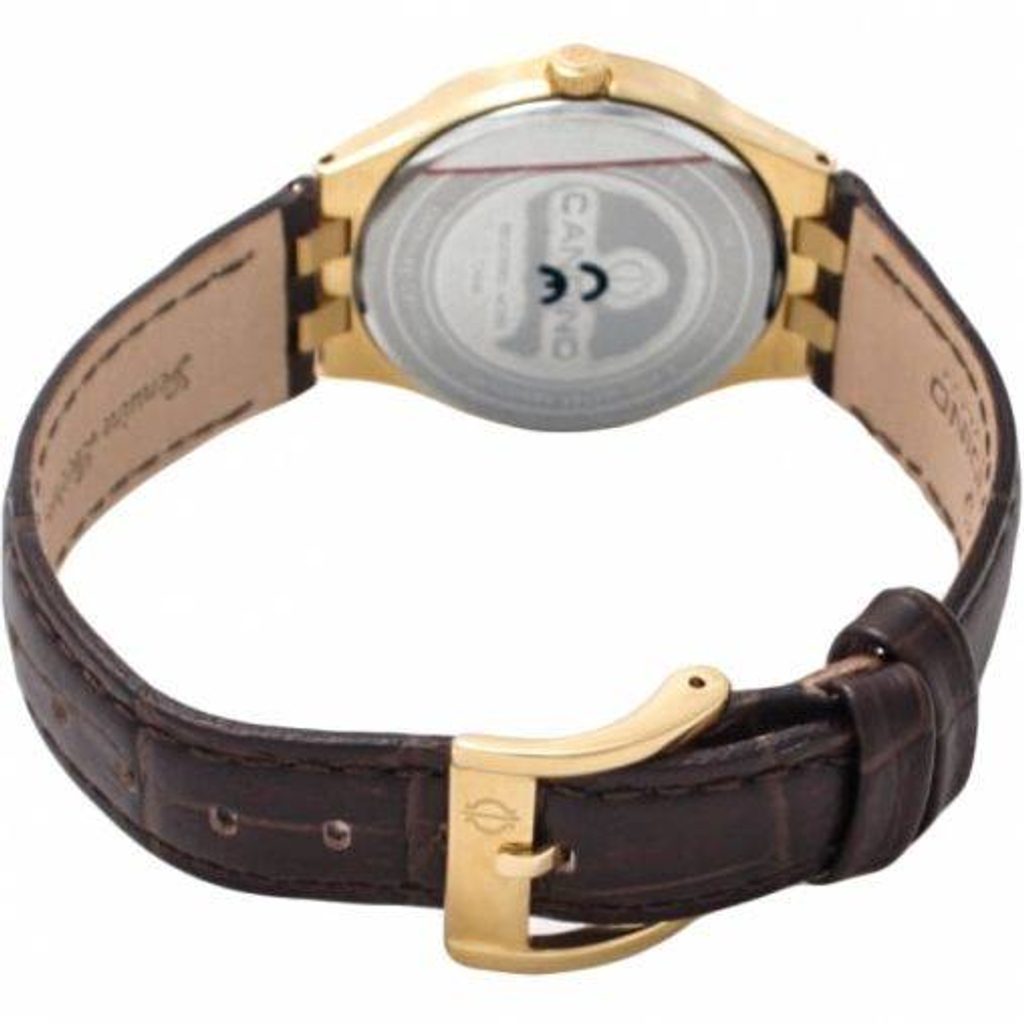 Na přehledném číselníku se nachází praktický ukazatel data na pozici 6. Pouzdro z ušlechtilé oceli se zlatou PVD úpravou působí velmi decentně, a na číselníku hezky vyniknou zlaté ručičky a indexy. Vše je skryto pod safírovým sklíčkem, jenž je maximálně odolné proti poškrábání. Uvnitř hodinek se skrývá bateriový švýcarský strojek ETA F004.111.