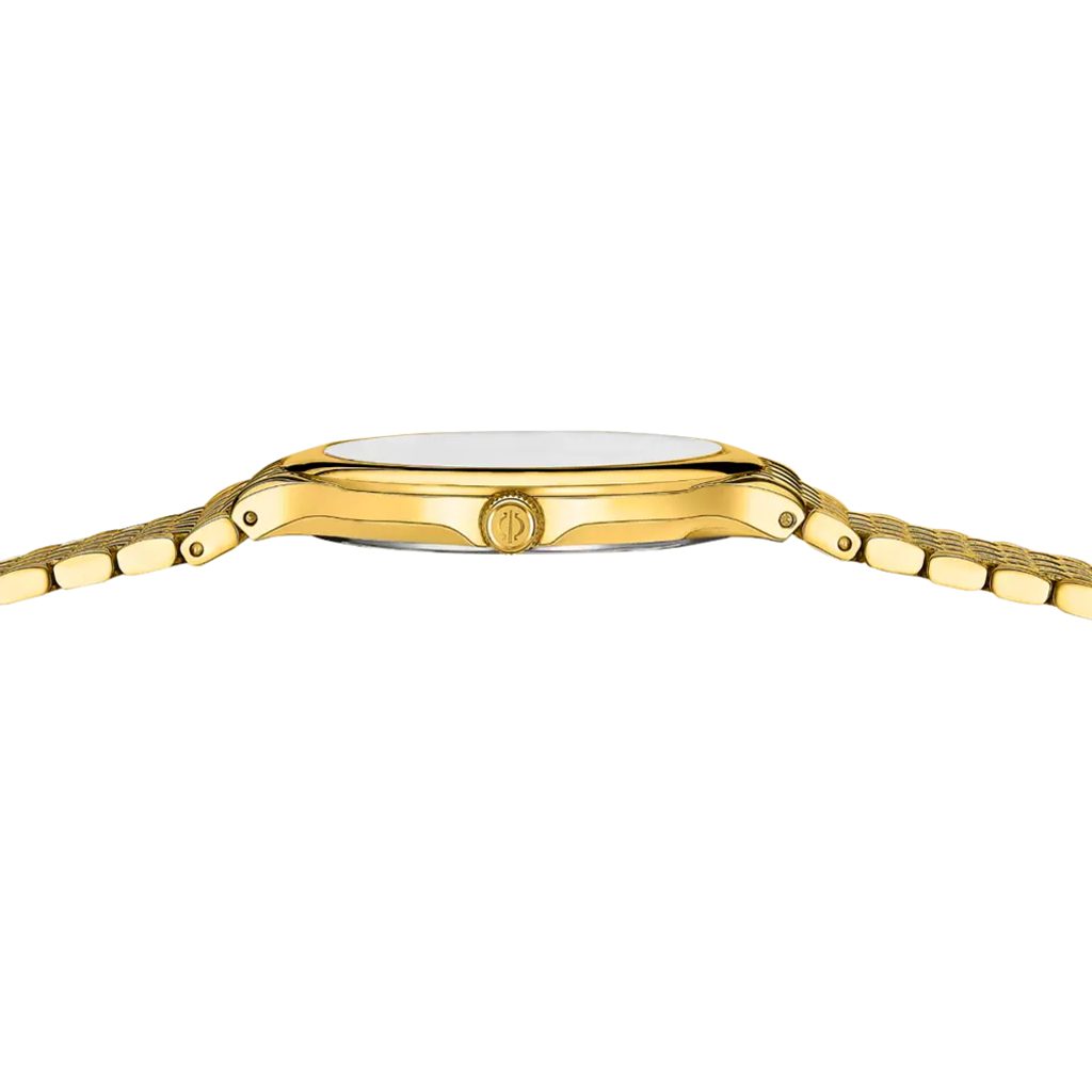 Pouzdro o průměru 33,5 mm je vyrobeno z nerezové oceli 316L se zlatou PVD povrchovou úpravou. Bílý perlěťový číselník tvoří dokonalý podklad pro elegantní ručky v barvě pouzdra. Výrazným prvkem modelu jsou kromě zlatých římských číslic také čiré krystaly, jež jsou usazené na pozicích indexů. Vše je chráněno kvalitním safírovým sklíčkem.