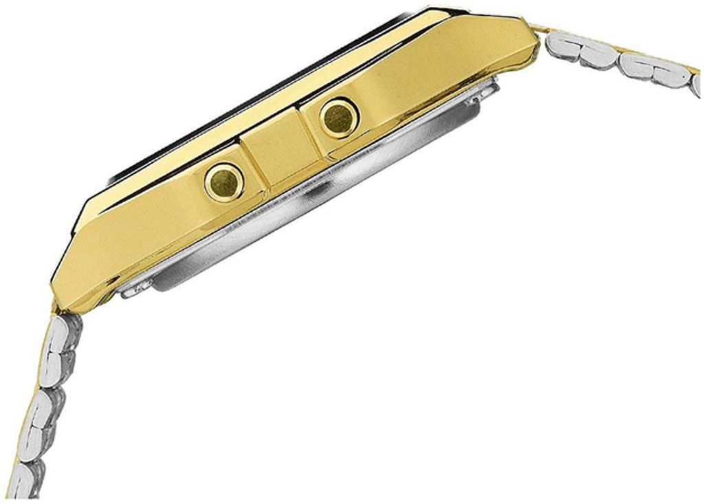 Casio A159WGEA-1 mají digitální displej, který zobrazuje čas, datum, den v týdnu, stopky, budík, 12/24 hodinový formát a LED osvětlení displeje. Kalendář je u hodinek plně automatický a nemusíte se tedy v průběhu času starat o jeho nastavování. Plastové pouzdro hodinek doplňuje jednoduchý kovový náramek, který je oblíbený nejen pro svůj design, ale také snadné nastavení délky, obojí se zlatou úpravou povrchu. Displej chrání plastové sklíčko. Díky průměru pouzdra 33,2 mm se řadí mezi menší hodinky. Hodinky jsou vlhkotěsné.