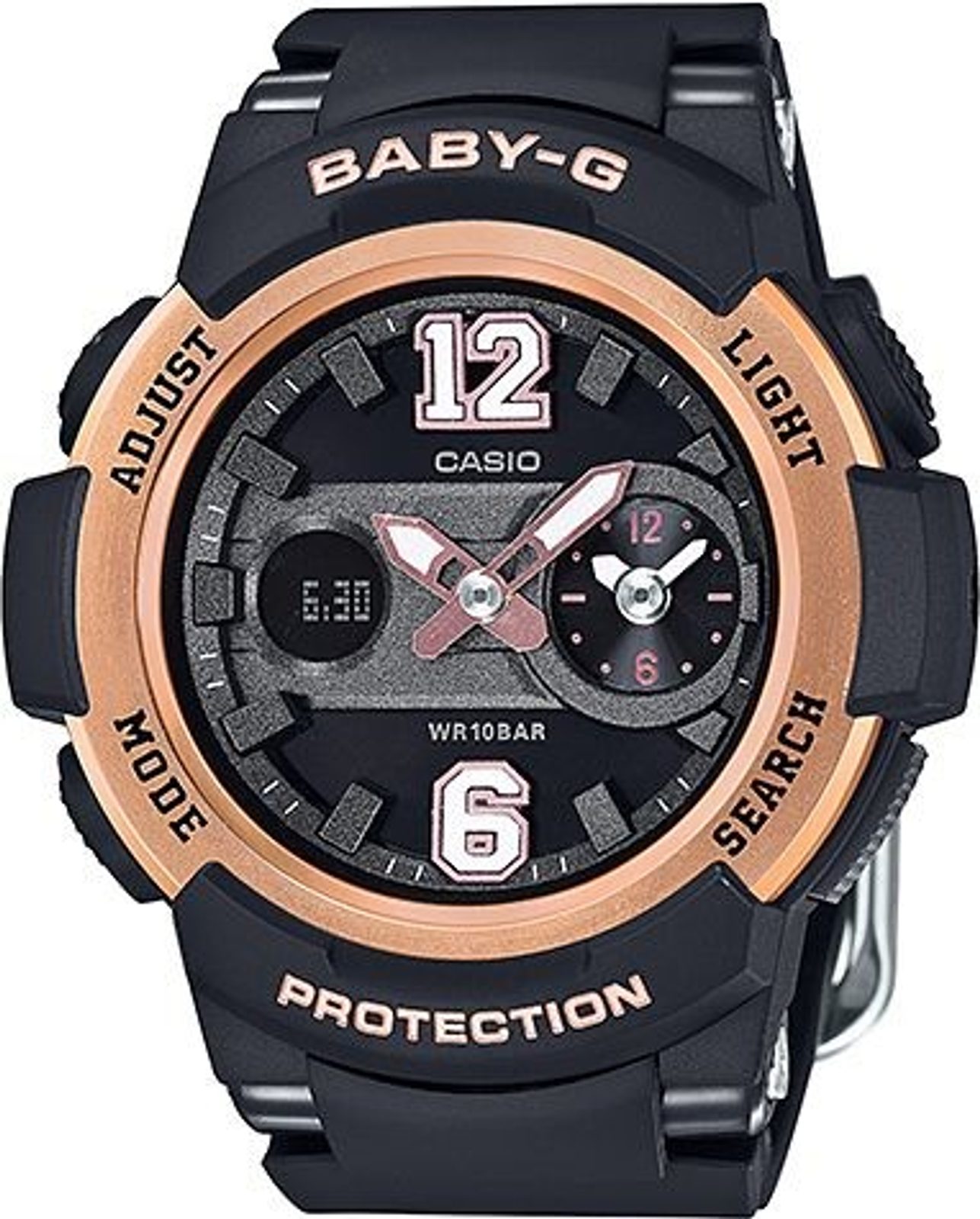 Casio Baby-G BGA 210-1B mají kombinovaný ciferník (analogový a digitální), který zobrazuje datum, stopky, budík a spoustu dalších užitečných funkcí. Pouzdro hodinek, včetně řemínku, je pryžové. Ciferník chrání minerální sklíčko. Díky průměru pouzdra 46 mm se řadí mezi rozměrově větší dámské hodinky. Vodotěsnost tohoto modelu je 100M, s hodinkami tedy můžete bez problémů plavat.