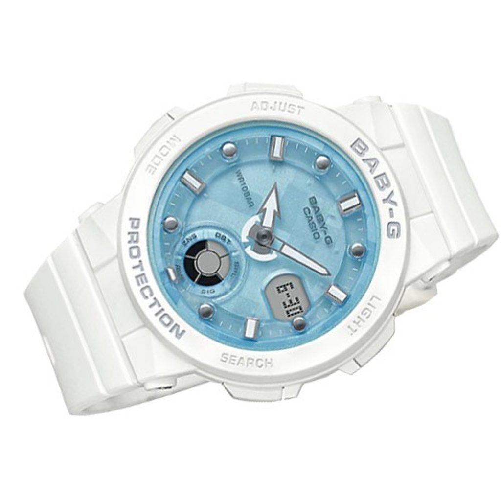 Casio Baby-G BGA 250-7A1 jsou novinkou ze série Analog-Digital Beach Style Series, pro něž je specifické použití atraktivních barev a designu pojícího se k létu a moři. Základními detaily je hodinová ručka připomínající lodní kotvu a kombinace kulatých a hranatých indexů, které evokují kormidlo. Casio Baby-G BGA 250-7A1 mají kombinovaný ciferník (analogový a digitální), který zobrazuje datum, stopky, budík a další užitečné funkce, které upotřebí jedinci žijící aktivním životem. Subciferník na pozici třetí hodiny ukazuje den, datum, časovou zónu, čas v jiné časové zóně, hodinky tak mohou být vhodné pro cestovatele.