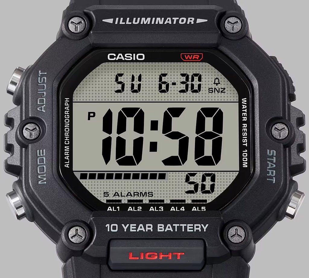 Casio AE 1600H-1AV nabízí základní funkce, které využijete při volnočasových aktivitách. Digitální displej hodinek vyniká skvělou přehledností, zobrazuje klasické údaje jako datum, den v týdnu, stopky (s možností měření času 1. a 2. místa a mezičasů). Hodinky umožňují nastavit duální čas a až 5 budíků, či odpočet. Velkou předností modelu je pak dlouhá životnost baterie až 10 let.