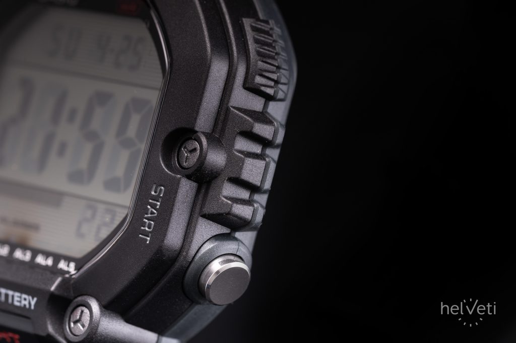 Pryskyřicové pouzdro hodinek je doplněno pryžovým řemínkem. Díky velkému a přehlednému displeji a prakticky řešenému ovládání pomocí 4 tlačítek, se hodinky brzy stanou Vaší přirozenou součástí. Průměrem pouzdra 49,7 mm se hodinky řadí mezi velké. Voděodolnost tohoto modelu je 100 m, není jej tak třeba odkládat při sprchování, plavání a jiných vodních sportech.