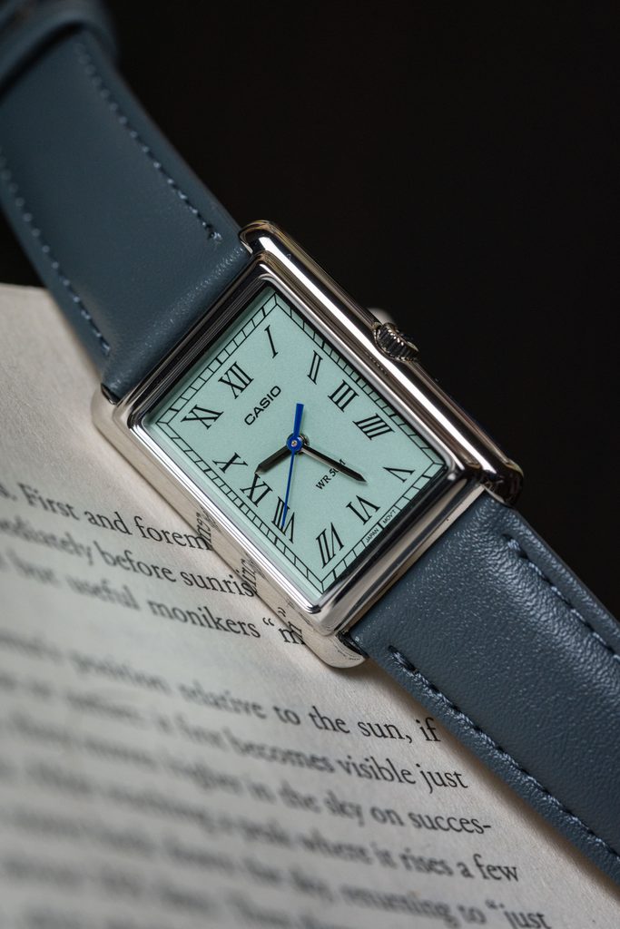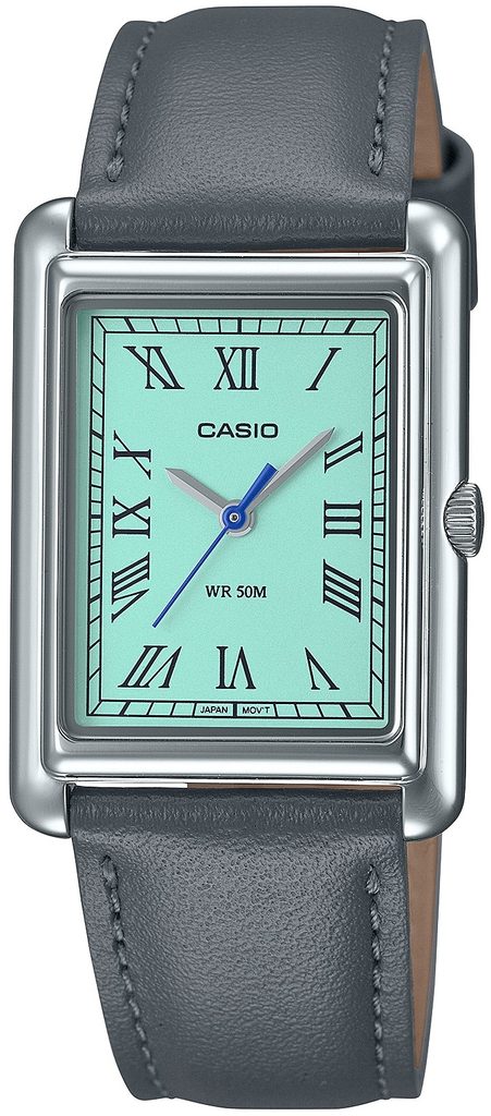 Hodinky Casio Collection LTP B165L-2BV jsou díky svému zpracování a designu vhodným doplňkem do společnosti, ale také pro každodenní nošení. Obdélníkové pouzdro hodinek je vyrobené z nerezové oceli, doplňuje jej šedý kožený řemínek. Hodinky osloví klasickým číselníkem s římskými číslicemi na hodinových pozicích. Ten je vyveden v oblíbené světle modré barvě. Chráněn je pak minerálním sklíčkem.