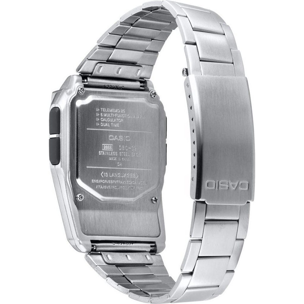 Casio DBC 32D-1A mají digitální displej, který zobrazuje čas, datum, den v týdnu, stopky, budík a údaje z kalkulačky a databanky. Kromě toho hodinky nabízí konverzi měn a zobrazení dne v týdnu až ve 13 jazycích (databanka podporuje znaky těchto 13 vybraných jazyků). Kalendář je u hodinek plně automatický a nemusíte se tedy v průběhu času starat o jeho nastavování. Plastové pouzdro hodinek doplňuje ocelový náramek zakončený překlápěcí sponou, díky tomu hodinky dosahují velmi nízké váhy 62,5 gramů. Displej chrání plastové sklíčko. Díky průměru pouzdra 37,4 × 50,4 mm se řadí mezi větší hodinky. Hodinky nejsou voděodolné.