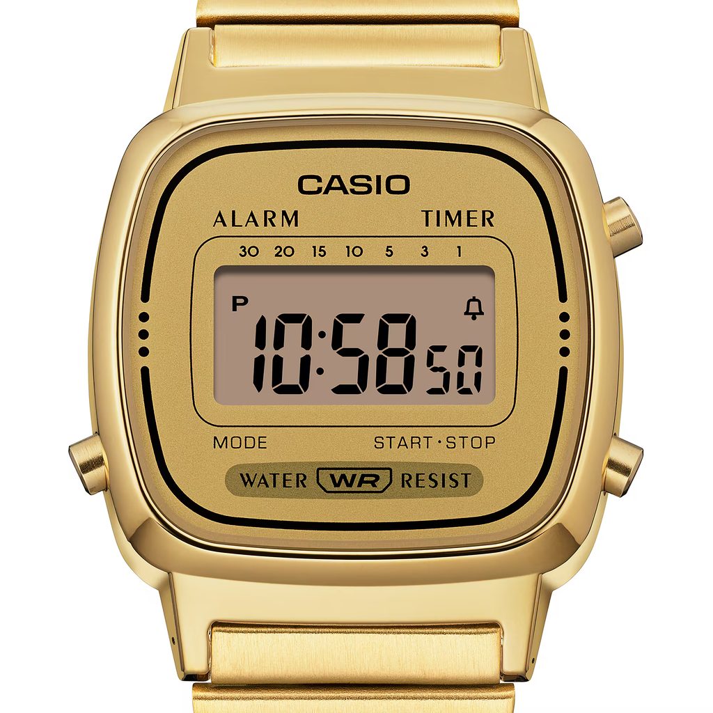 Casio LA670WEGA-9EF z řady Vintage Collection jsou stylové dámské hodinky s elegantním retro designem, který je ideální volbou pro každodenní nošení. Tento model se vyznačuje čistými liniemi a praktickými funkcemi, které osloví každou moderní ženu.