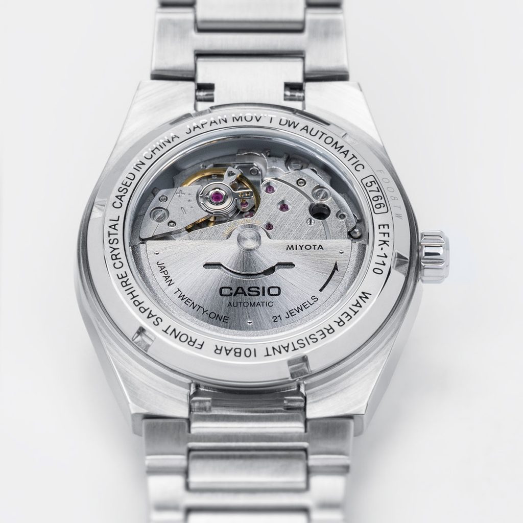 Modely Casio Edifice Automatic EFK-100 jsou prvními mechanickými hodinkami ve stáji tohoto japonského výrobce. Galvanoplastika na číselníku připomíná vzhled kovaného uhlíku a dotváří tak sportovní nádech modelů. Safírové sklo zajišťuje vysokou odolnost pro každodenní použití a propracované detaily, jako jsou aplikované indexy a linie pouzdra a broušený povrch, dotvářejí sofistikovaný design.
