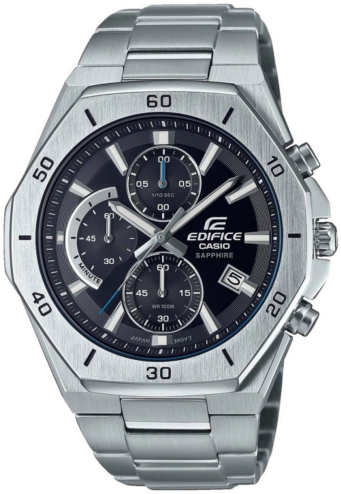 Casio Edifice EFB 680D-1AV upoutají svým dynamickým vzhledem a propracovaným a přehledným číselníkem, jenž má hodinové pozice osazeny plastickými indexy. Disponují ukazatelem data na pozici čtvrté hodiny, u nějž potěší použití tmavého věnce s bílým potiskem a funkcí chronografu, jehož chod zobrazují dva přehledné subciferníky - čítač minut a vteřin. Stopky lze ovládat postranními tlačítky - horní stopky spouští a zastavuje, spodní resetuje naměřené hodnoty. S hodinkami lze měřit až hodinové intervaly a zaznamenávat časy 1. a 2. místa.