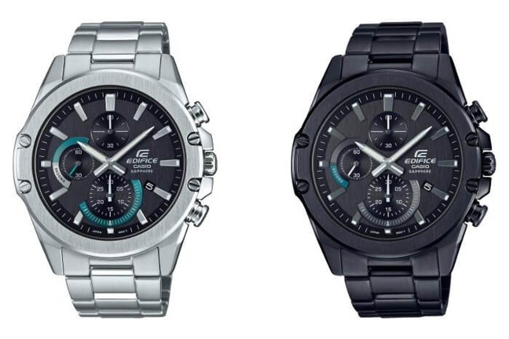 Casio Edifice EFR S567DC-1AV upoutají svým dynamickým vzhledem a propracovaným číselníkem působícím efektem broušeného povrchu, jenž má hodinové pozice osazeny plastickými indexy. Disponují ukazatelem data na pozici čtvrté hodiny, u nějž potěší použití tmavého věnce s bílým potiskem a funkcí chronografu, jehož chod zobrazují dva přehledné subciferníky - čítač minut a vteřin. Stopky lze ovládat postranními tlačítky - horní stopky spouští a zastavuje, spodní resetuje naměřené hodnoty. S hodinkami lze měřit až třicetiminutové intervaly.