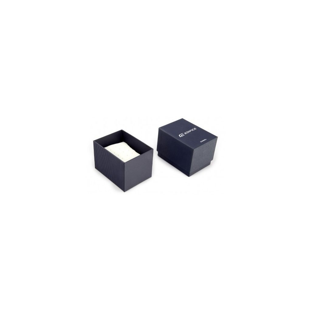 Casio Edifice EFV 100L-1A disponují ukazatelem data na pozici třetí hodiny. Ocelové pouzdro hodinek je doplněno černým koženým řemínkem s kontrastním bílým prošitím. Přehledný ciferník hodinek, na nějž jsou aplikovány výrazné indexy a ručky s nánosem luminiscence zajišťující lepší čitelnost při zhoršených světelných podmínkách, chrání minerální sklíčko. Vodotěsnost tohoto modelu je 100 m a je podpořena šroubovací korunkou - s hodinkami tedy můžete bez obav plavat.