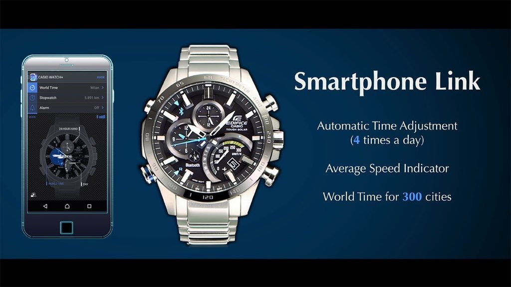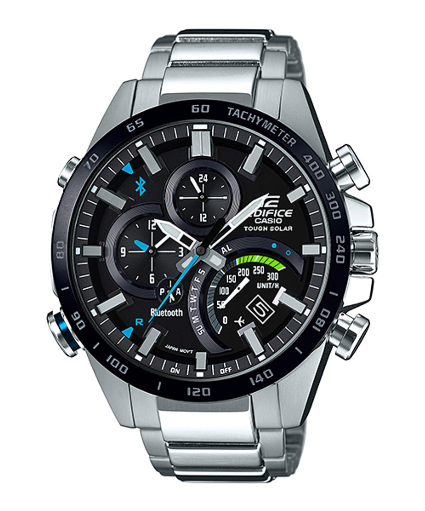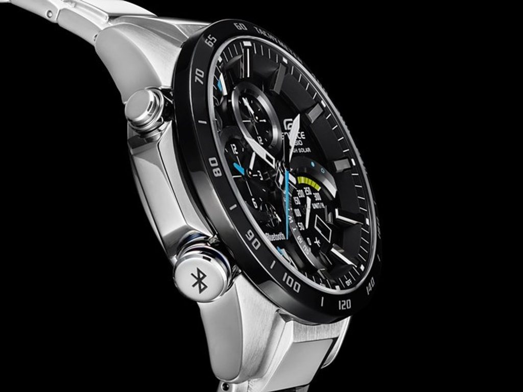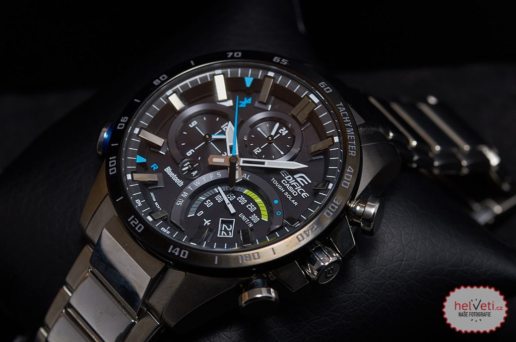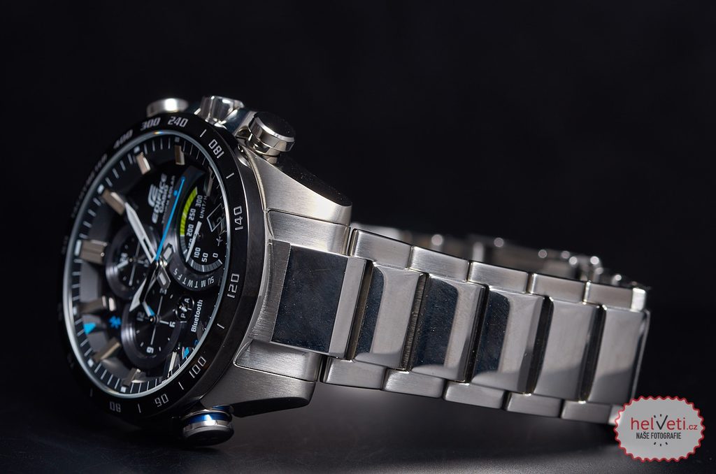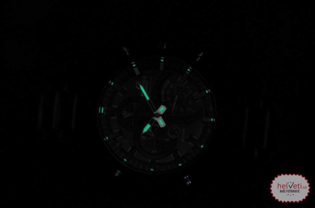 Casio Edifice EQB 501XDB-1A upoutají svým dynamickým vzhledem a propracovaným ciferníkem. Model klade důraz na dobrou přehlednost a snadnou ovladatelnost kvůli možnosti plného využití všech funkcí, které hodinky nabízejí. Mezi nejdůležitější bezesporu patří možnost synchronizace hodinek s chytrým telefonem skrze technologii Bluetooth. Propojení, ve spojení s použitím příslušné aplikace, umožňuje mít pod kontrolou neustále aktuální a přesný čas, nabízí možnost snadného nastavení duálního času výběrem jednoho z předdefinovaných 300 měst, nastavení denního alarmu. Mezi další užitečné funkce patří Phone finder - po stisknutí tlačítka hodinek se rozezní Váš telefon a vy jej tak snáze naleznete. Hodinky Vás také dokáží upozornit, vzdálíte-li se příliš od svého telefonu v době propojení, či na nový příchozí email. V případě potřeby je možné hodinky přepnout do režimu letadlo.