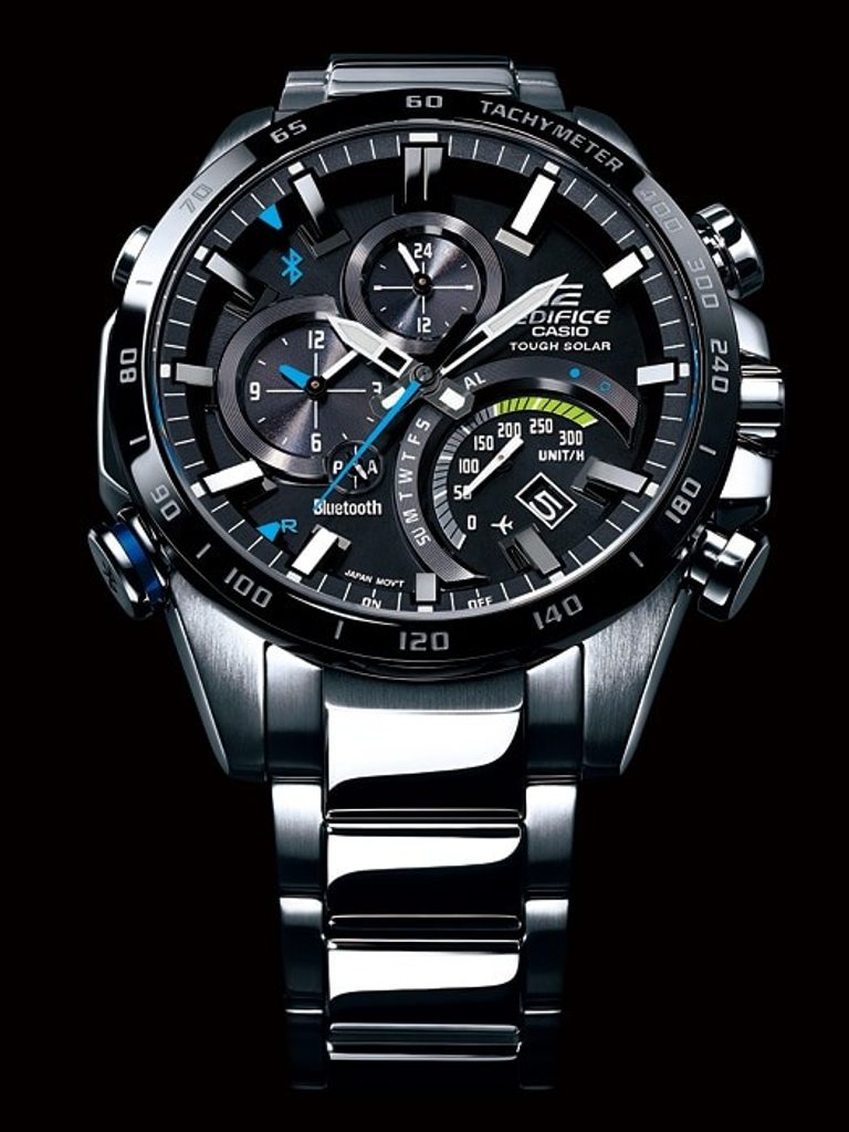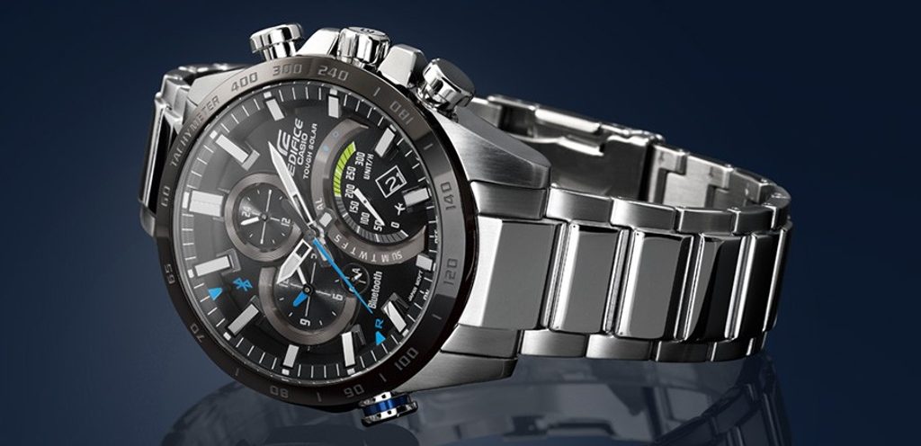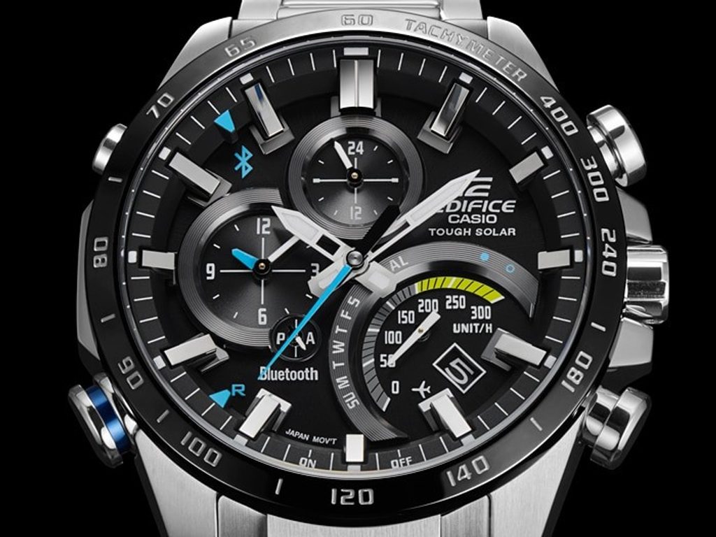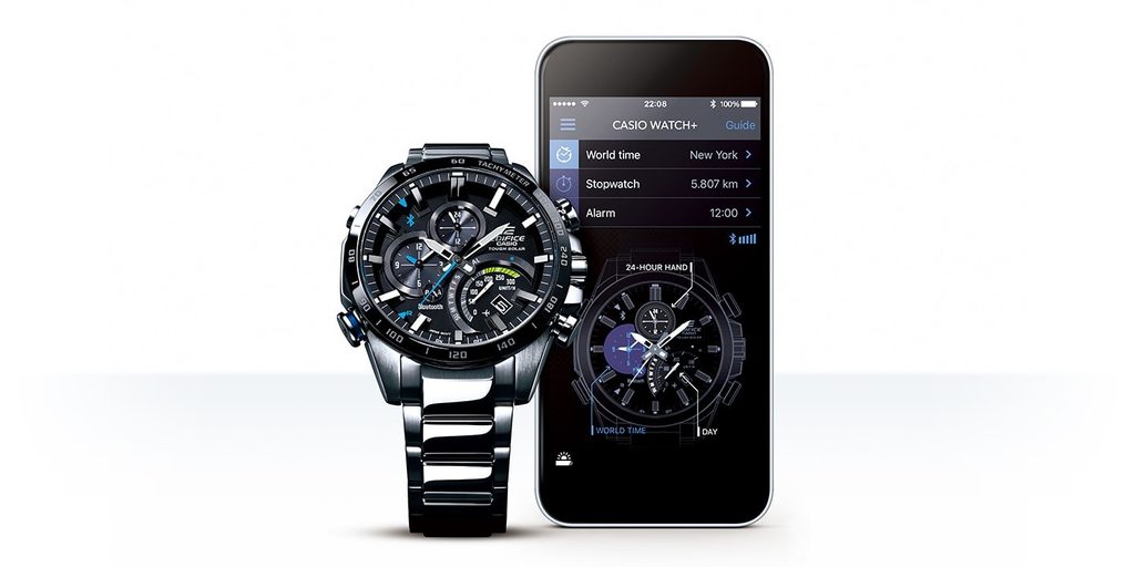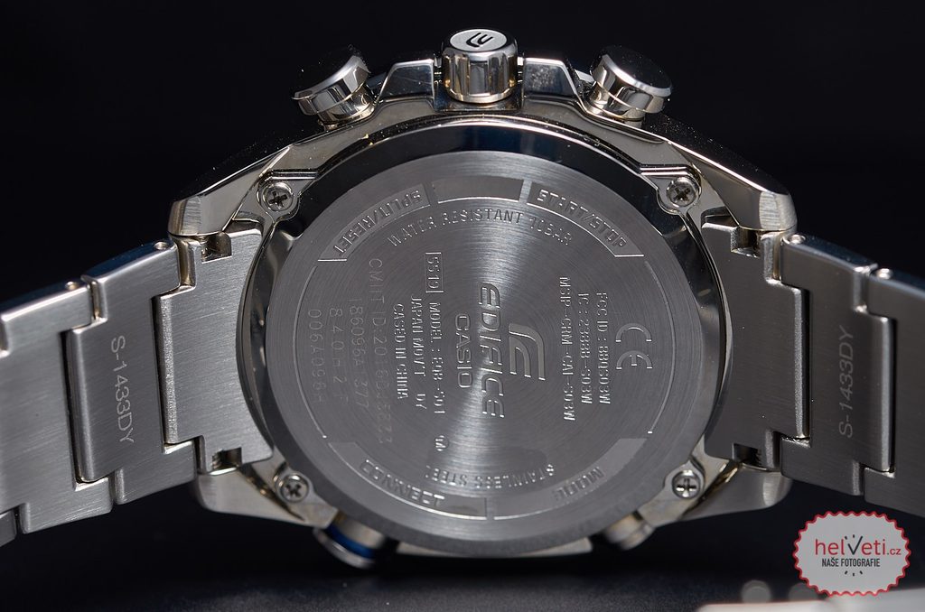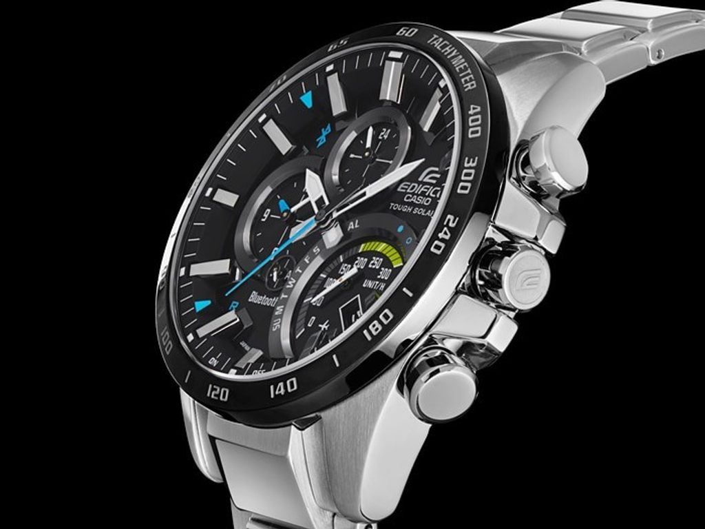 Casio Edifice EQB 501XDB-1A upoutají svým dynamickým vzhledem a propracovaným ciferníkem. Model klade důraz na dobrou přehlednost a snadnou ovladatelnost kvůli možnosti plného využití všech funkcí, které hodinky nabízejí. Mezi nejdůležitější bezesporu patří možnost synchronizace hodinek s chytrým telefonem skrze technologii Bluetooth. Propojení, ve spojení s použitím příslušné aplikace, umožňuje mít pod kontrolou neustále aktuální a přesný čas, nabízí možnost snadného nastavení duálního času výběrem jednoho z předdefinovaných 300 měst, nastavení denního alarmu. Mezi další užitečné funkce patří Phone finder - po stisknutí tlačítka hodinek se rozezní Váš telefon a vy jej tak snáze naleznete. Hodinky Vás také dokáží upozornit, vzdálíte-li se příliš od svého telefonu v době propojení, či na nový příchozí email. V případě potřeby je možné hodinky přepnout do režimu letadlo.