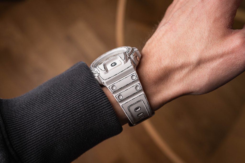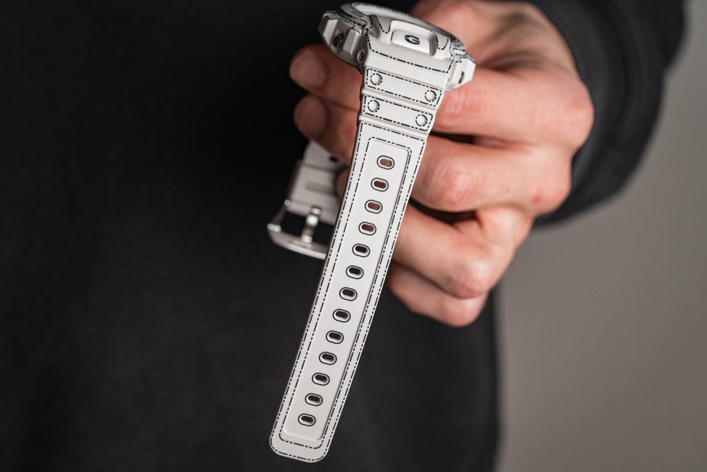 Model Casio G-Shock DW-6900RGM-5ER čerpá inspiraci z umění origami, které se vyvinulo s vynálezem odolného a krásného washi papíru. Symbolizuje svobodu tvorby, preciznost a nekonečné možnosti tvarů, které papír skýtá. Charakteristické tečkované linie na pouzdře i náramku připomínají naznačené přehyby papíru a speciální strukturovaný povrch evokuje texturu washi papíru.
